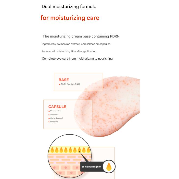 Крем для век двойного действия, предназначенный для уменьшения морщин и осветления. Этот насыщенный, но освежающий крем, обогащенный **экстрактом икры лосося**, **лососевым маслом** и **ПДРН**, укрепляет тонкую и деликатную кожу вокруг глаз, разглаживает морщины и обеспечивает интенсивное увлажнение.. Уникальная **капсульная смешивающая формула** обеспечивает как увлажнение, так и питание для упругой, молодой кожи вокруг глаз..