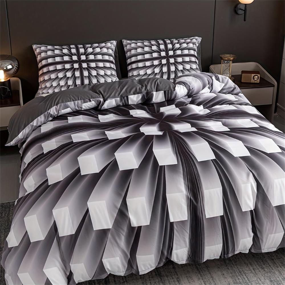 Комплект постельного белья из 3 предметов, трехмерный черно-белый комплект постельного белья, мягкий удобный пододеяльник, для спальни, гостевой комнаты