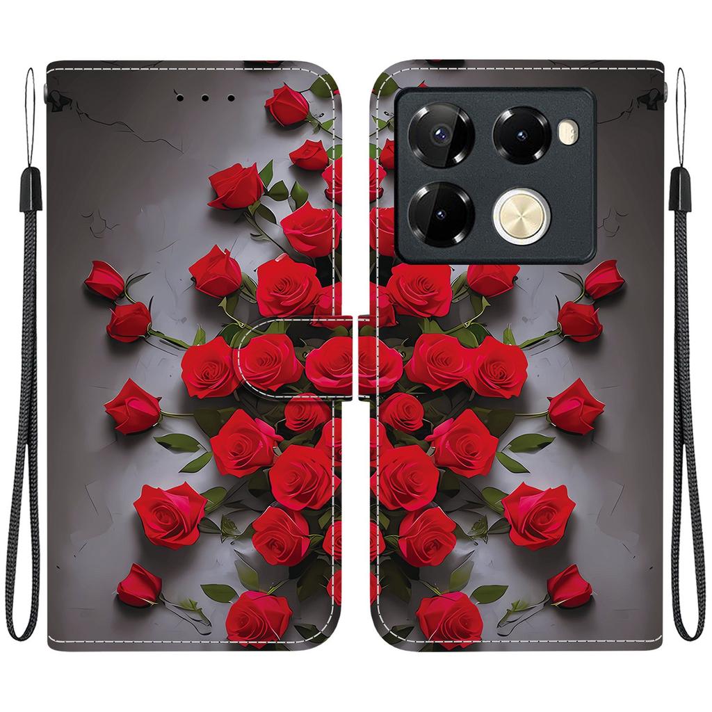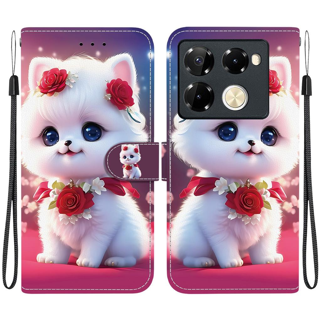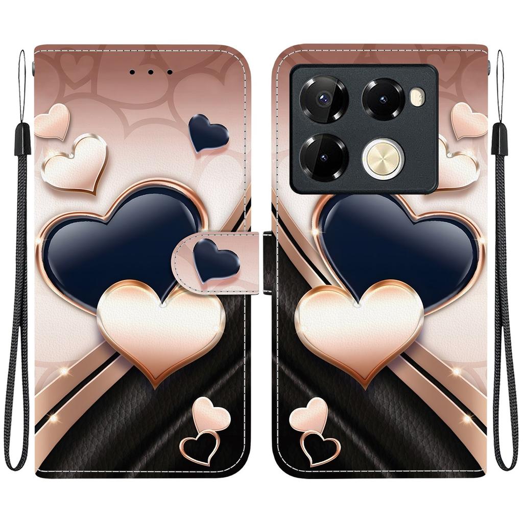 Чехол-книжка из искусственной кожи ручной работы для Infinix Note 40 Pro+ / 5G (X6851B) Противоскользящий ударопрочный чехол с ремешком на запястье и дизайнами в виде сердец/роз и кошек