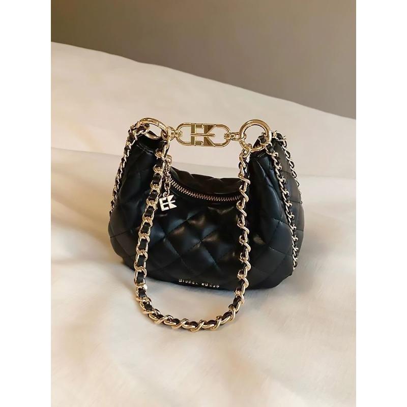 "Сумка-полумесяц Thousand Gold Night, Сумка-месяц, Черная клетчатая сумка на цепочке, Сумка на плечо, Сумка через плечо, Сумка."