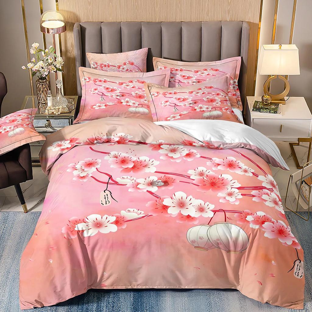 Пододеяльник в японском стиле Вишневый комплект постельного белья Тема Укиё-э Волновой узор Покрывало Гора Экзотический стиль