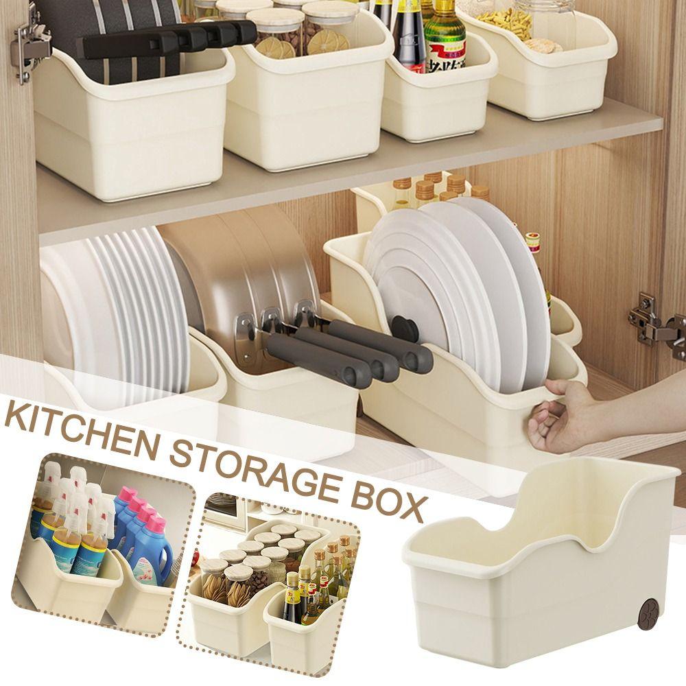 3. Экономия места: Изготовленный из пластика, этот кухонный ящик для хранения имеет узкую форму для экономии места.. В нем можно размещать предметы разной высоты, что делает его гибким и подходящим для различных условий и целей.