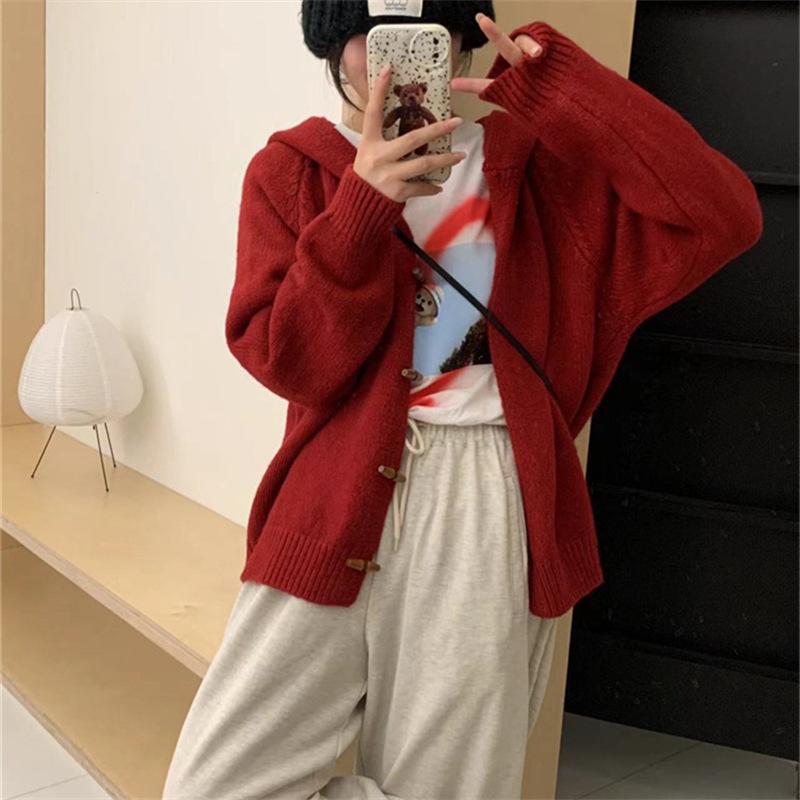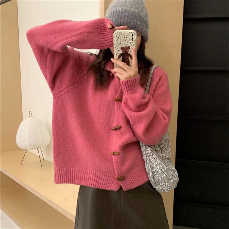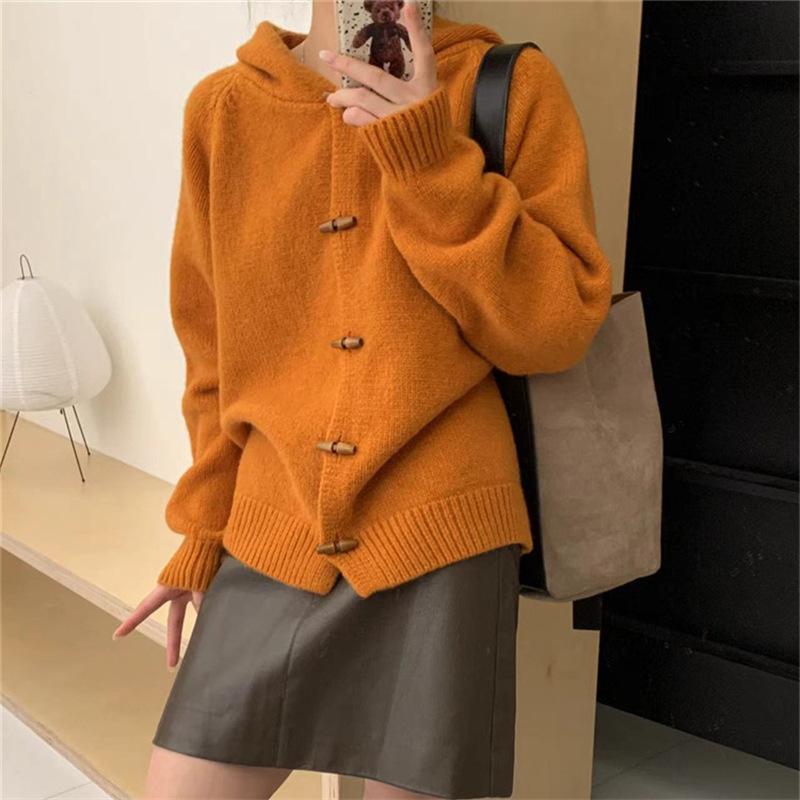 Корейский ленивый ветер худи кардиган на роговых пуговицах женский новый дизайн мягкий восковой вязаный осенний плащ топ