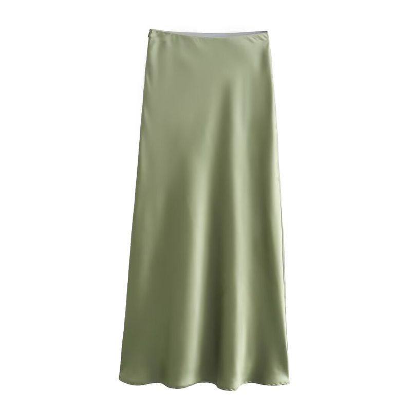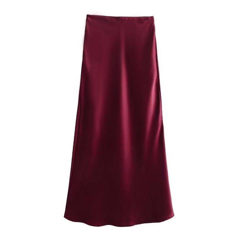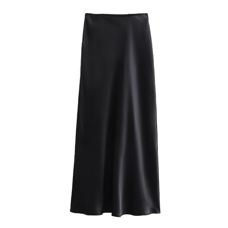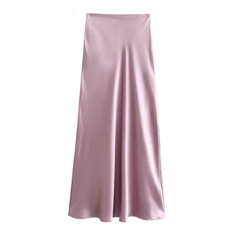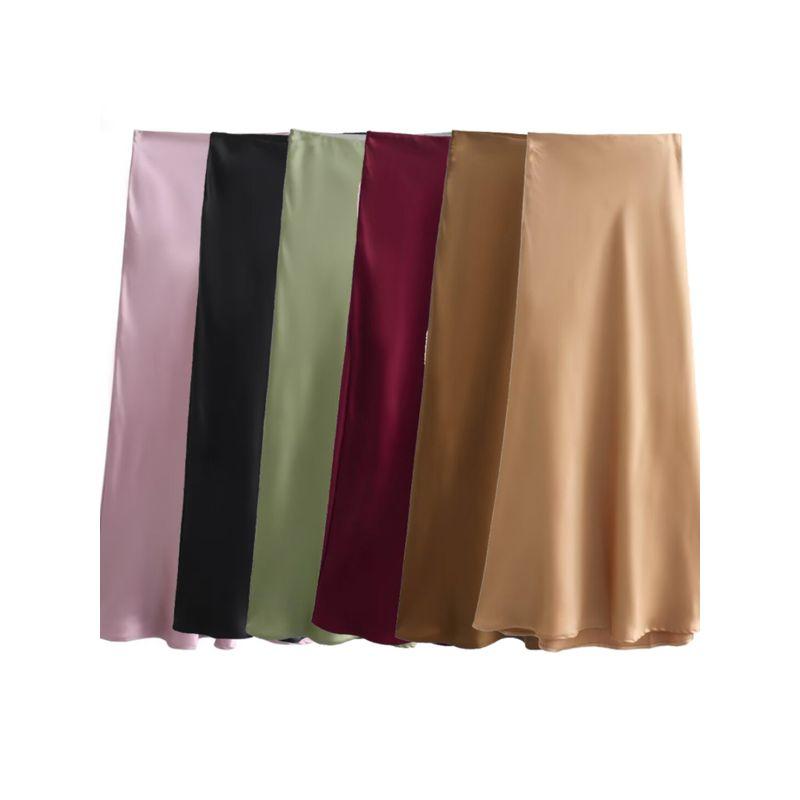 Kaslead New Arrival Women's Fashion Style Fashion Casual Easiest for Match Fine Acetate Satin Elastic Waist Zipper Skirt