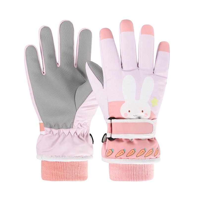 Детские мультяшные хлопковые перчатки относятся к розовым уличным лыжным перчаткам для учеников начальной школы для езды на велосипеде и сохранения тепла зимой.
