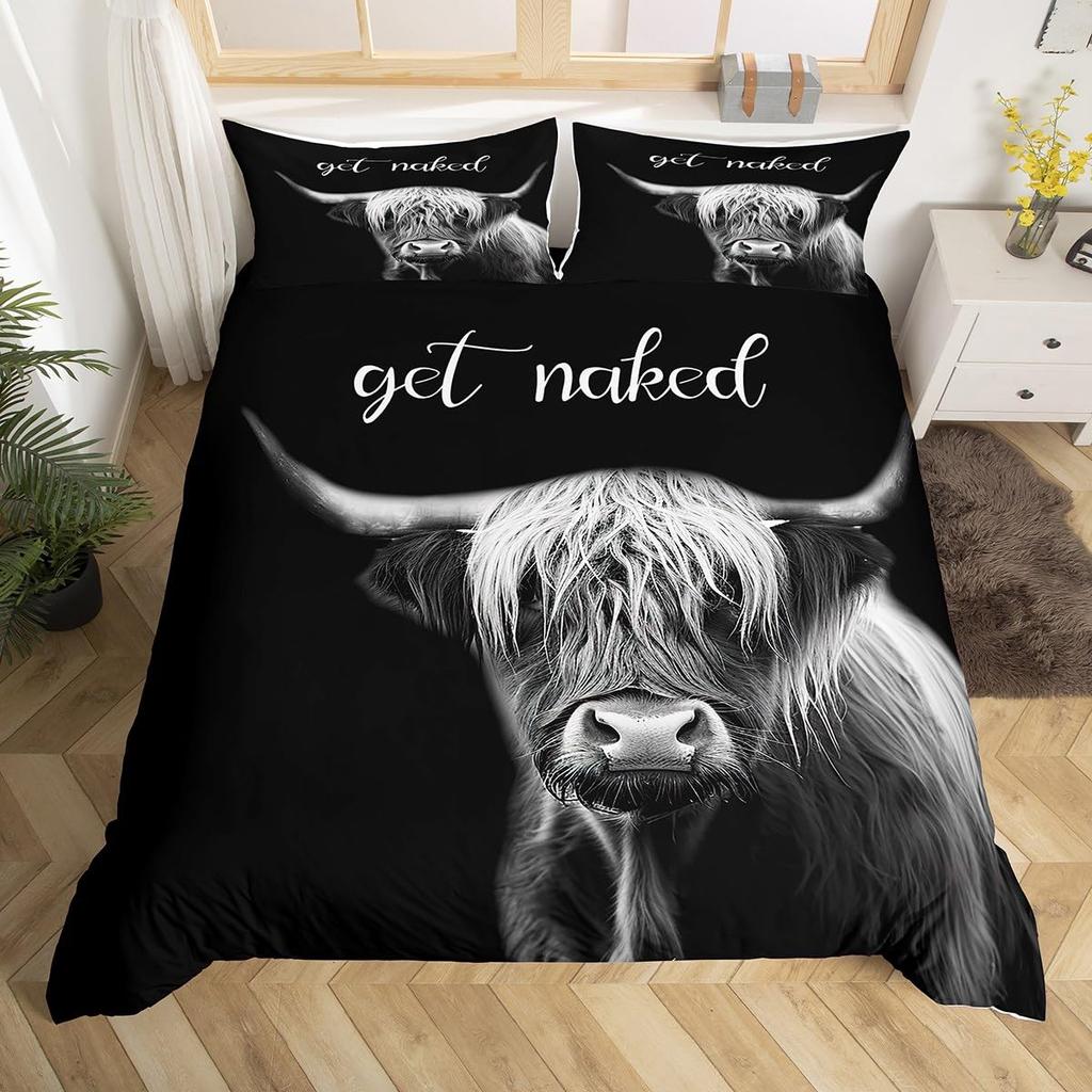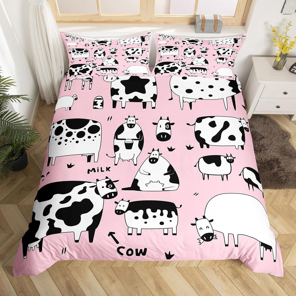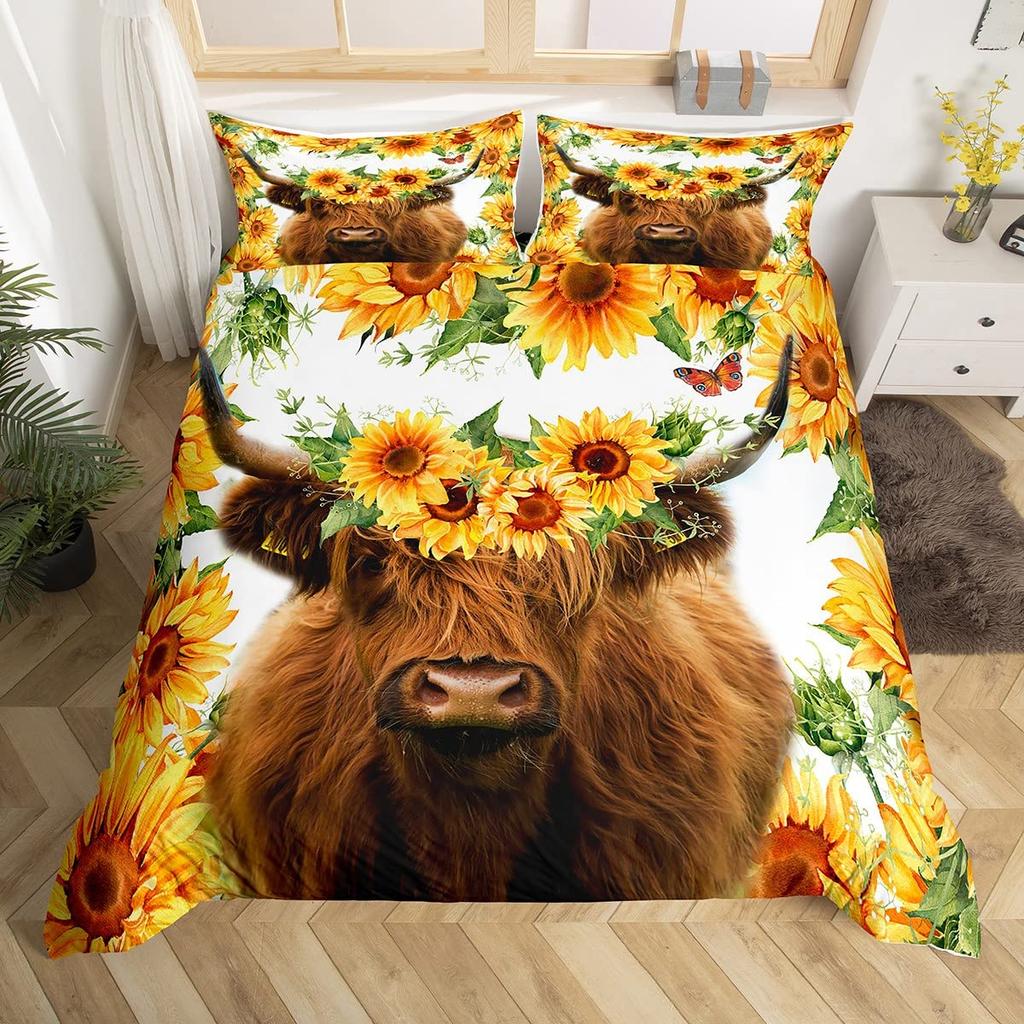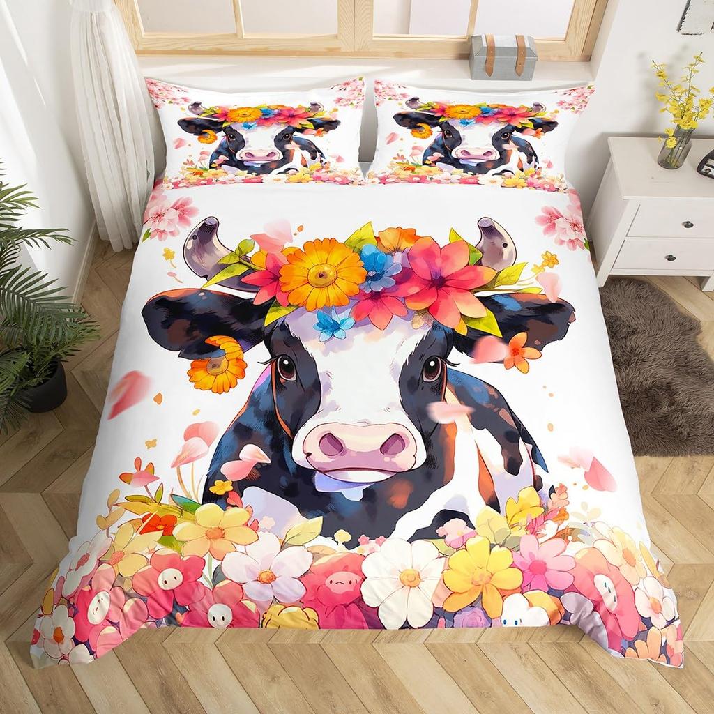 Пододеяльник с изображением коровы в горной местности, геометрический деревянный комплект постельного белья в деревенском стиле с цветами, покрывало для одеяла с изображением коровы