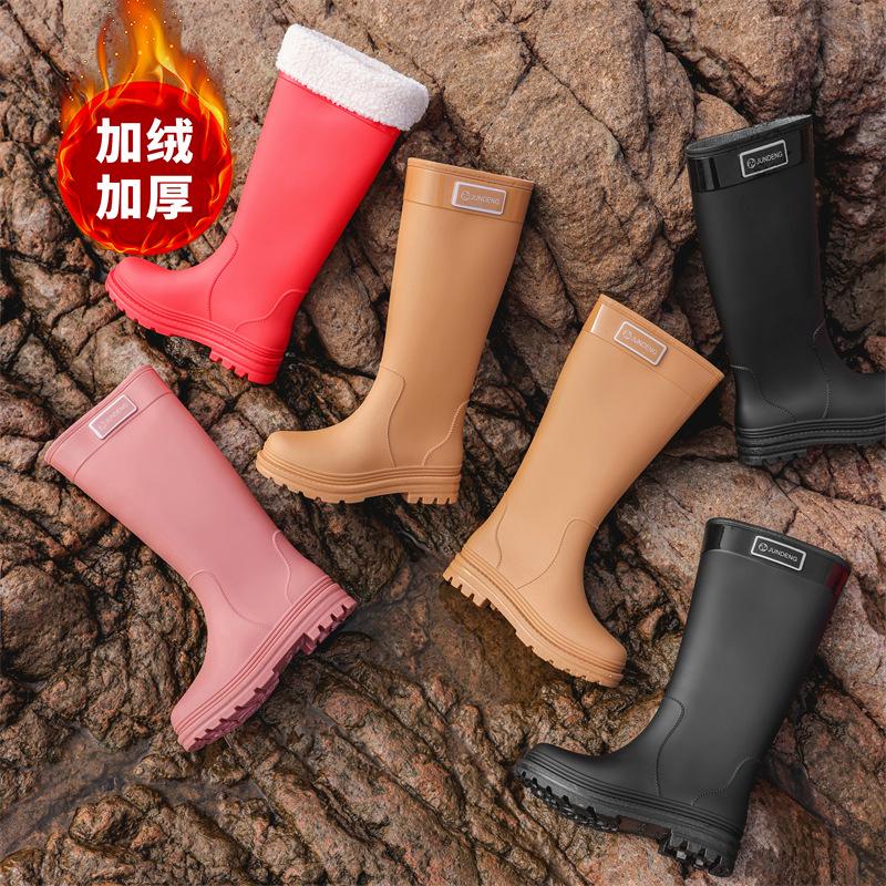 Весенне-осенние изысканные женские забродные сапоги с высоким голенищем, женские приморские дождевые туфли, модные резиновые сапоги, сапоги с высоким голенищем, резиновые сапоги на толстой подошве