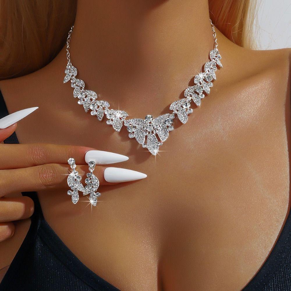 Zircon Earrings Shining Necklace Wedding Party Rhinestone Jewelry Set Banquet