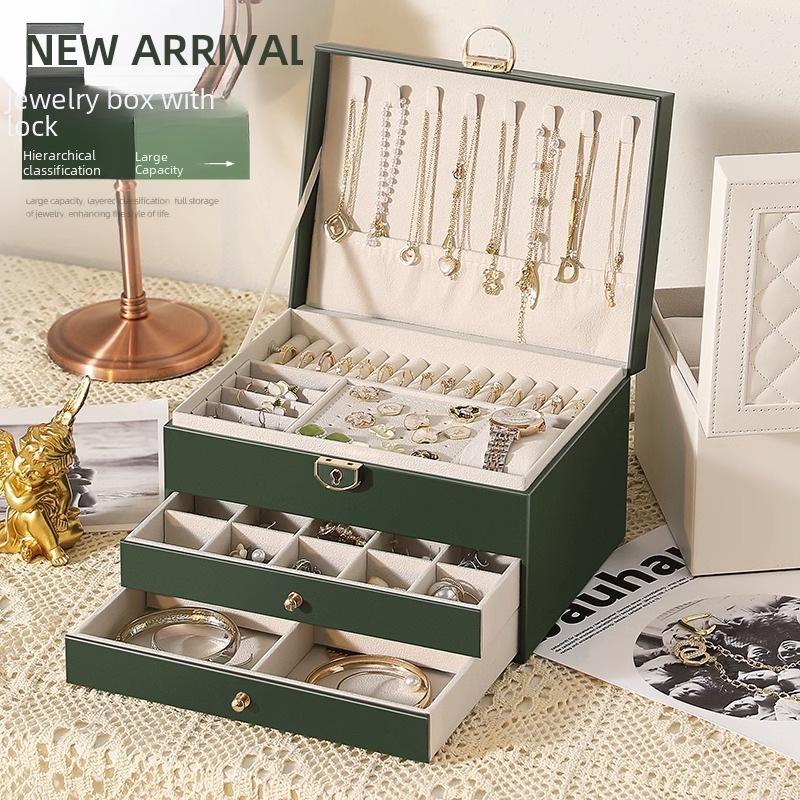 Изысканная трехслойная шкатулка для хранения украшений с большой вместимостью и многослойным ящиком для ожерелий, сережек и украшений для рук