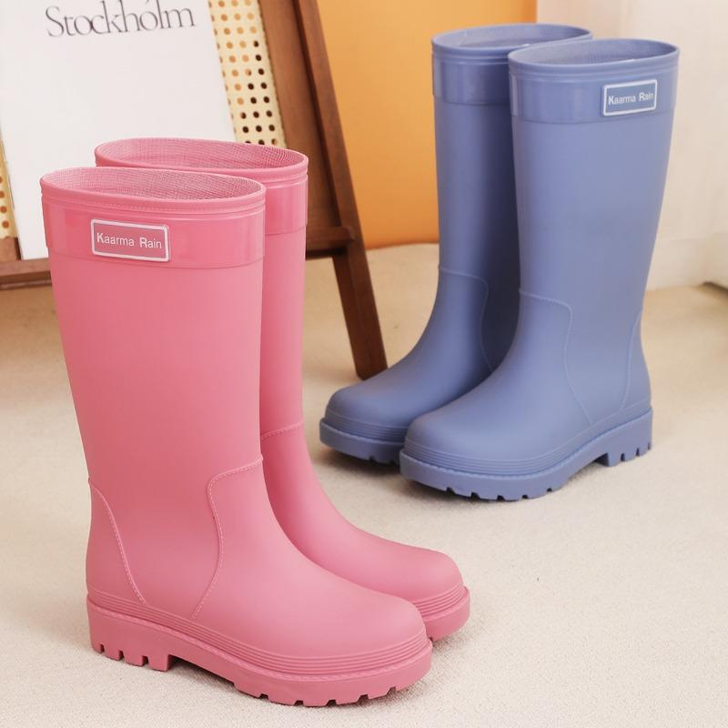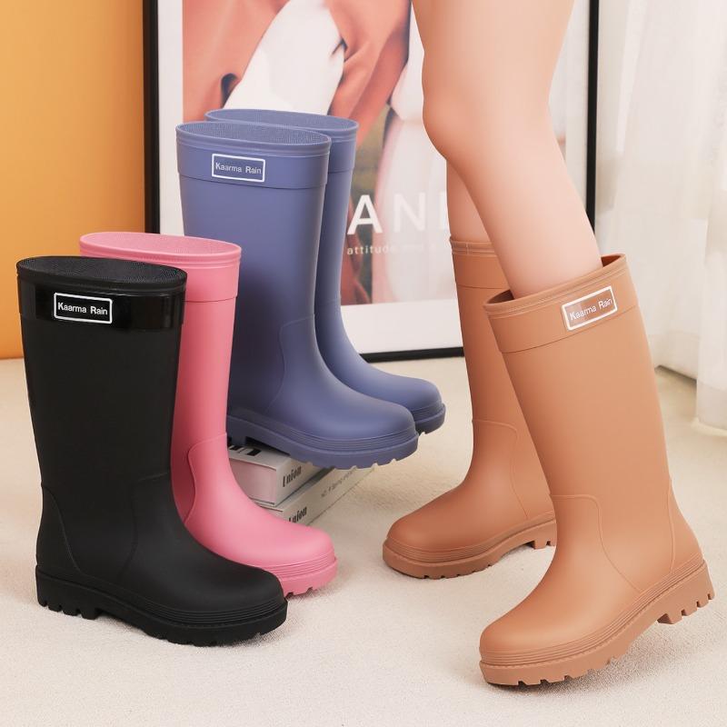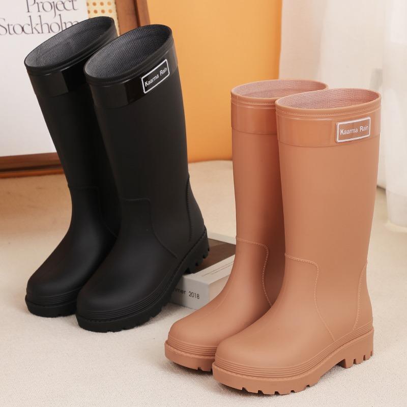 Модные женские резиновые сапоги с высоким голенищем, на платформе, на танкетке, нескользящие, из ПВХ, для дождливой погоды, для улицы, для поездок на работу, резиновая обувь, обувь для путешествий
