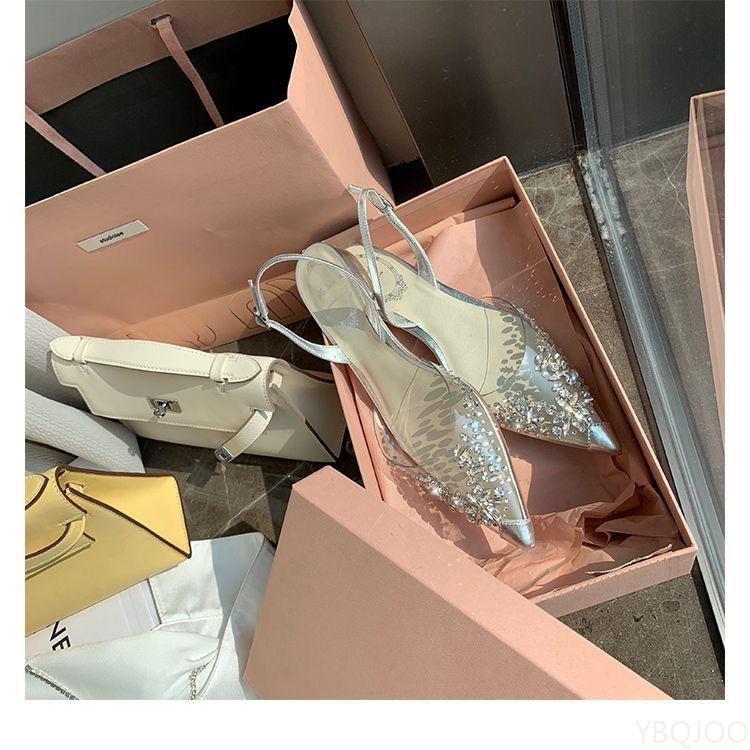 Новые Роскошные туфли со стразами Женские остроносые сандалии на низком каблуке Сказочный стиль нишевые Баотоу балетки Модные однотонные женские сандалии