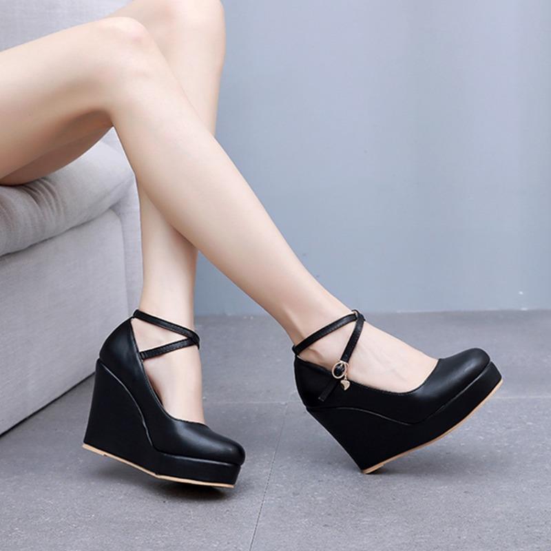 Лето 2025 Новая Мода Обувь на Толстой Подошве Комфорт Женские Туфли на Высоком Каблуке Круглый Носок Минималистичный Дизайн Внутреннее Увеличение Высоты Обувь