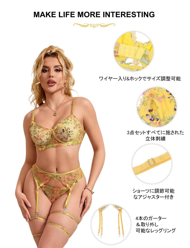 Ohyeah Цветочный вышитый бюстгальтер и трусики плюс сексуальное нижнее белье на косточках и с подвязками милое нижнее белье для провокационного размера M женский комплект, размер, пояс,