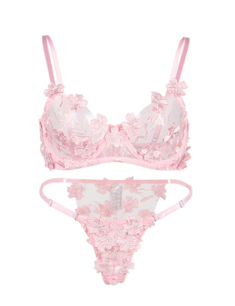 Сексуальный комплект нижнего белья бюстгальтер и трусики с прозрачным цветочным кружевом, размеры плюс, милый бюстгальтер [ohyeah] вышивка, M-5XL, размеры, прозрачное нижнее белье,