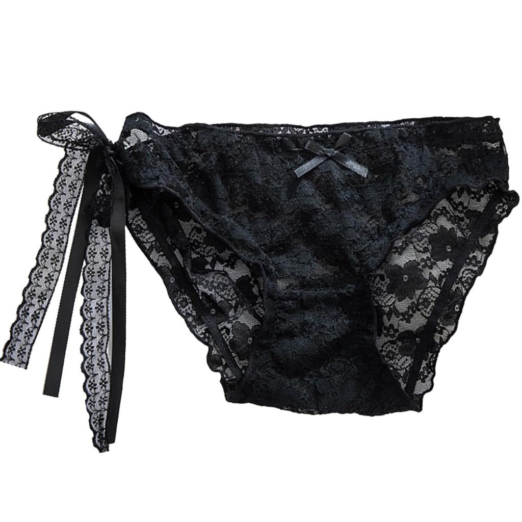Белые клыки Сексуальное нижнее белье Трусики с белыми и TT356 Женские оборки, Черный, (черный)