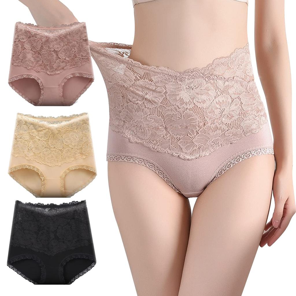 CHUJNX Глубокое хлопковое кружево Плюс LL женских трусиков с высокой талией, Размеры, Трусики для похудения ягодиц, M, L, XL, [Набор 3]