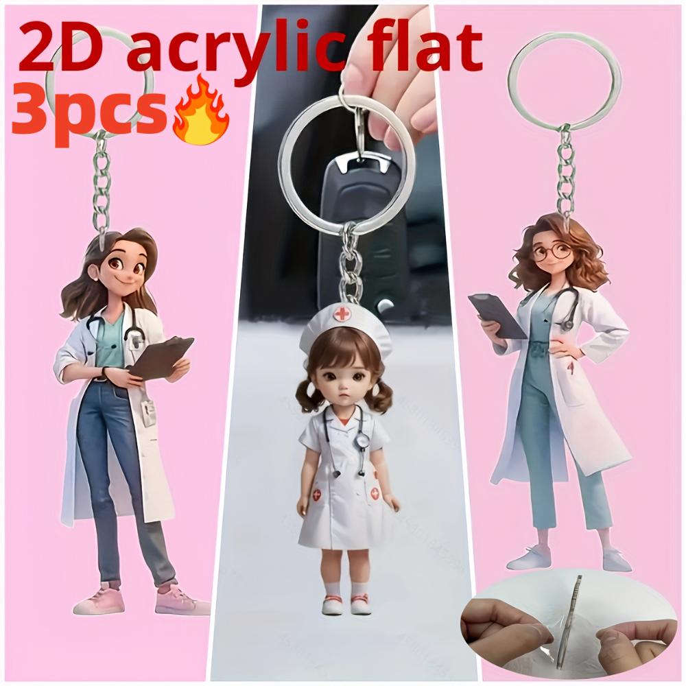 Прекрасная медсестра, 3 шт., 2D плоский акрил, украшение, подходит для брелока, рюкзака, медсестры, Рождества, Хэллоуина