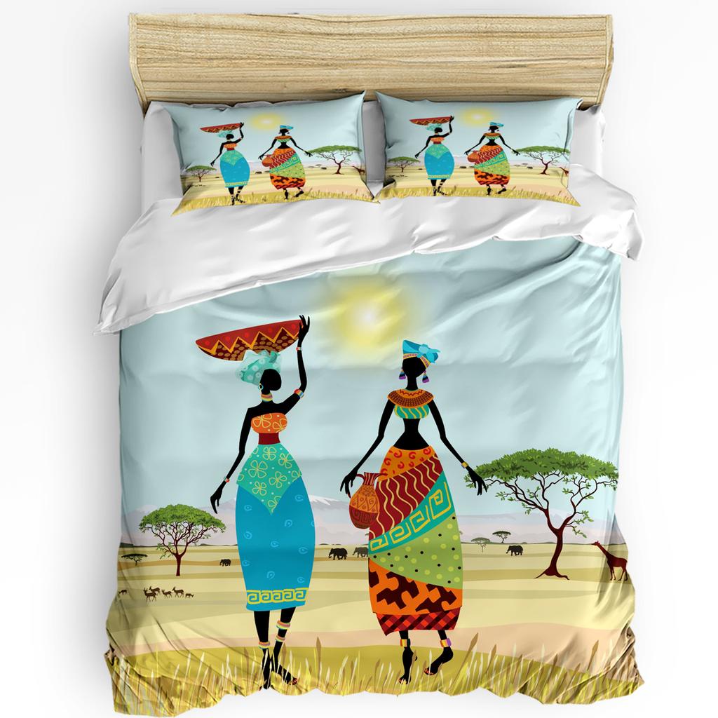 African Woman Dance Ethnic Culture Vase 3pcs Bedding Set For Bedroom Double Bed Home Textile Duvet Cover Quilt Cover Pillowcase