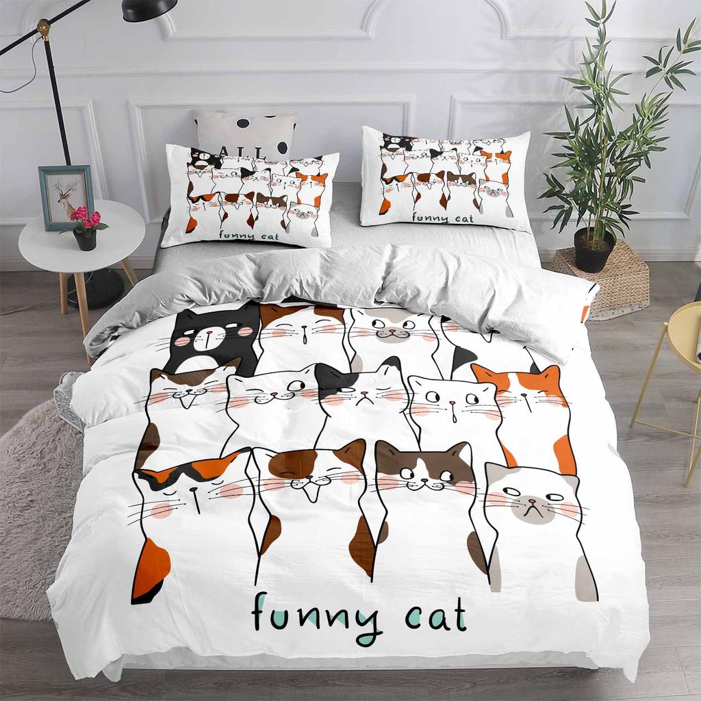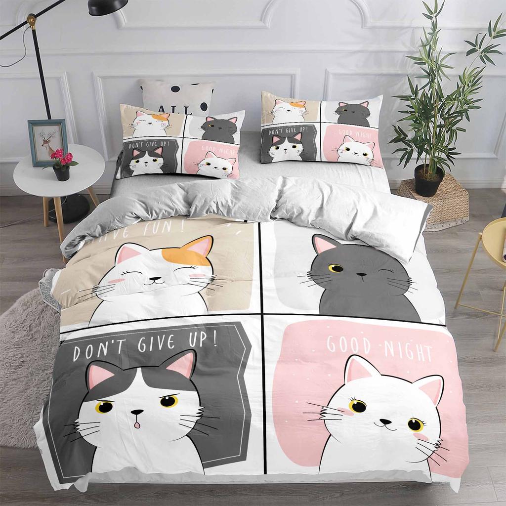 Мультяшный комплект постельного белья с котами для взрослых, зимние комплекты пододеяльников для детей, полуторный, двуспальный, королевский, кинг-сайз, набор для спальни, домашний текстиль, Housse De Couette