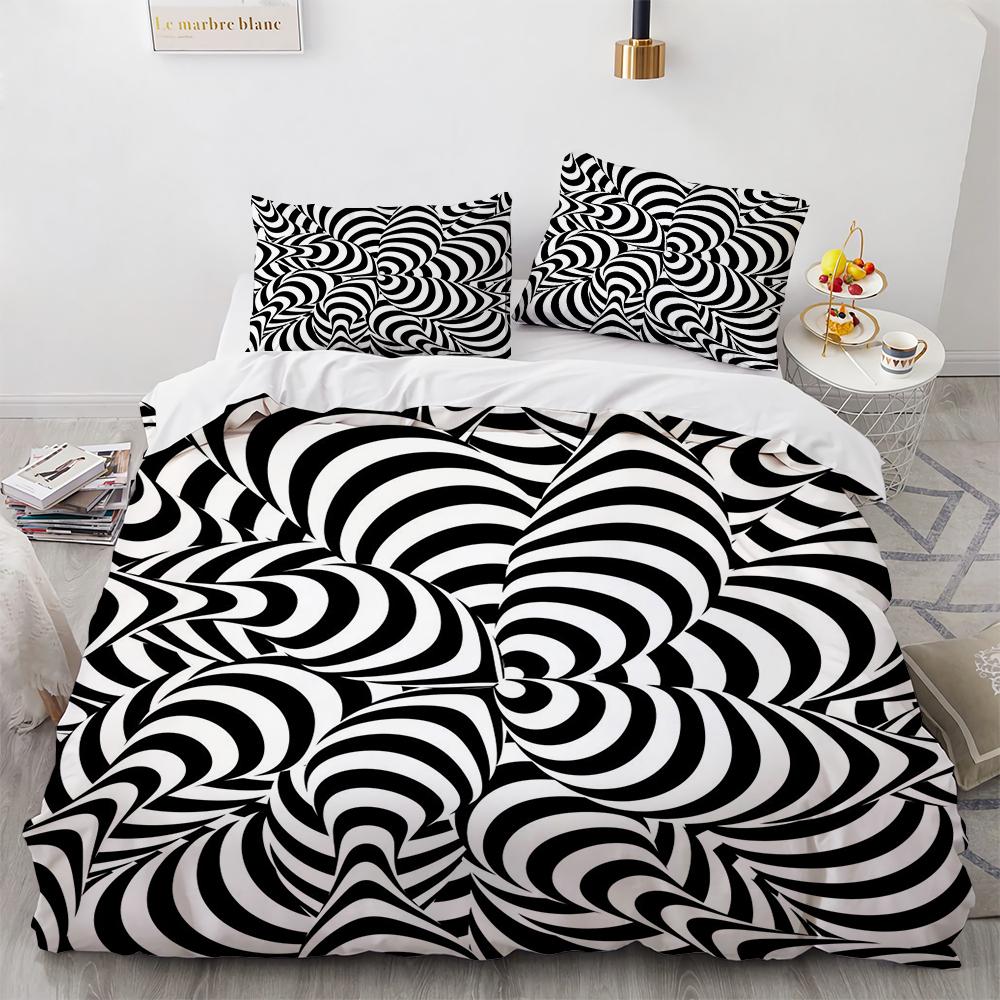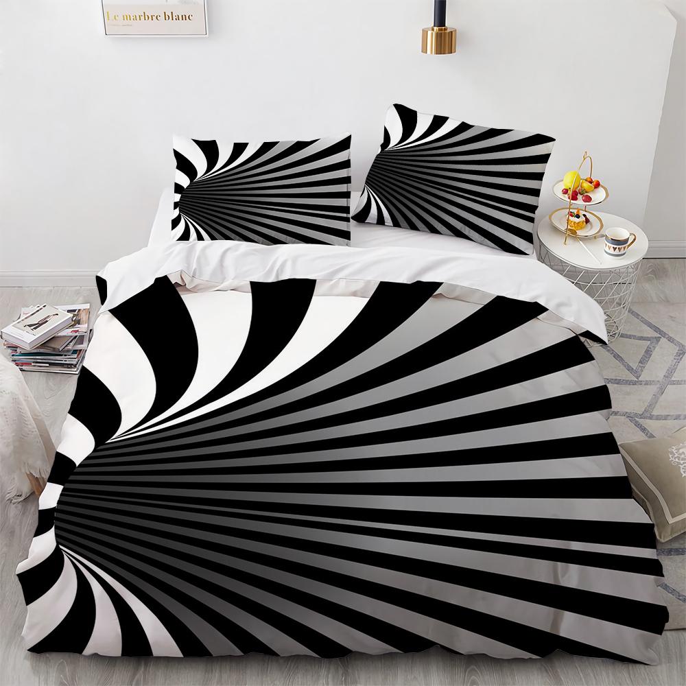 3D Стерео Узор Геометрический Комплект Пододеяльника Черный Белый Комплекты Постельного Белья Ультрамягкий Двусторонний Полосатый Чехол для Одеяла для Мужчин Женщин
