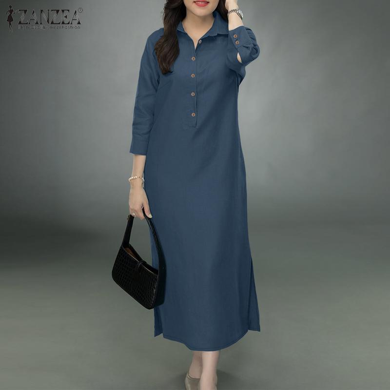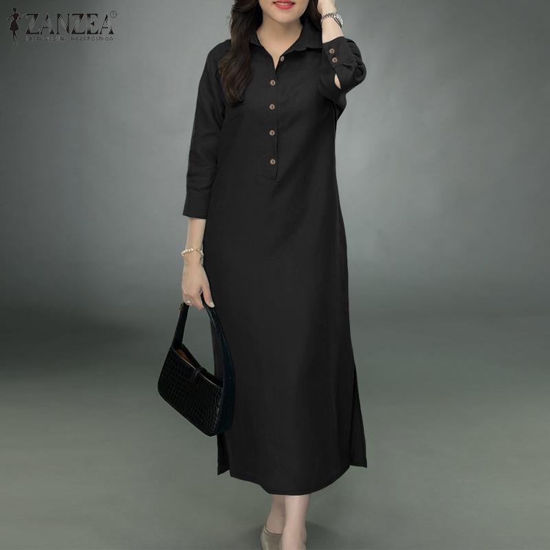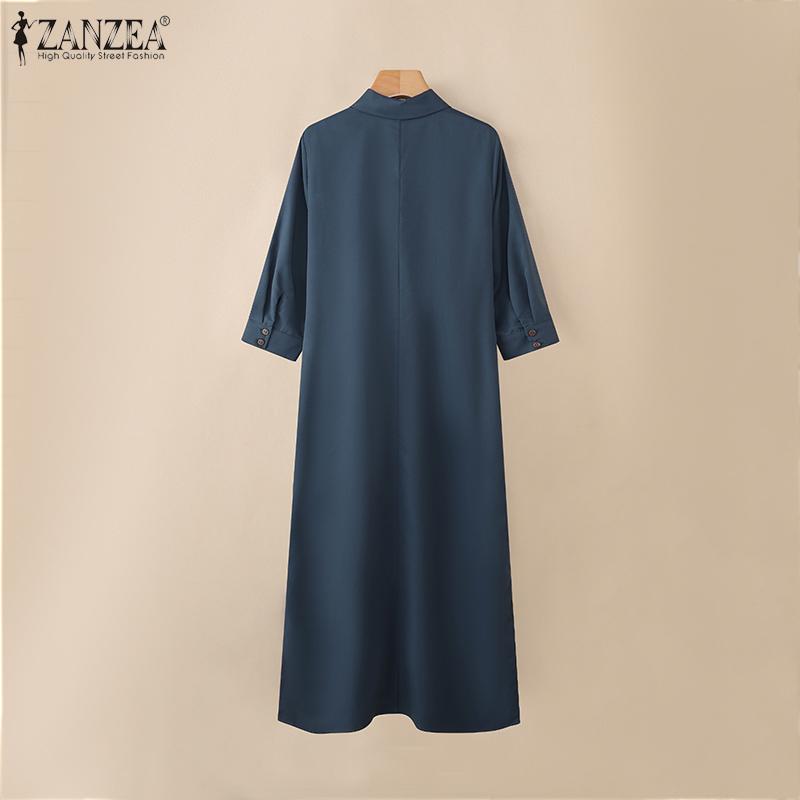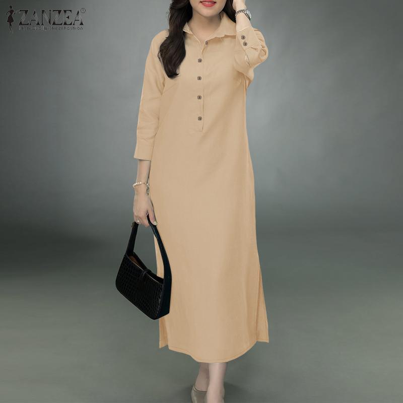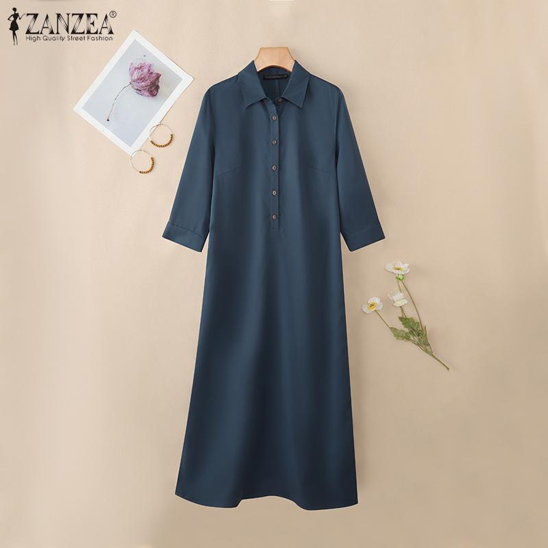 ZANZEA Женское свободное повседневное платье-рубашка с отложным воротником и рукавом 3/4