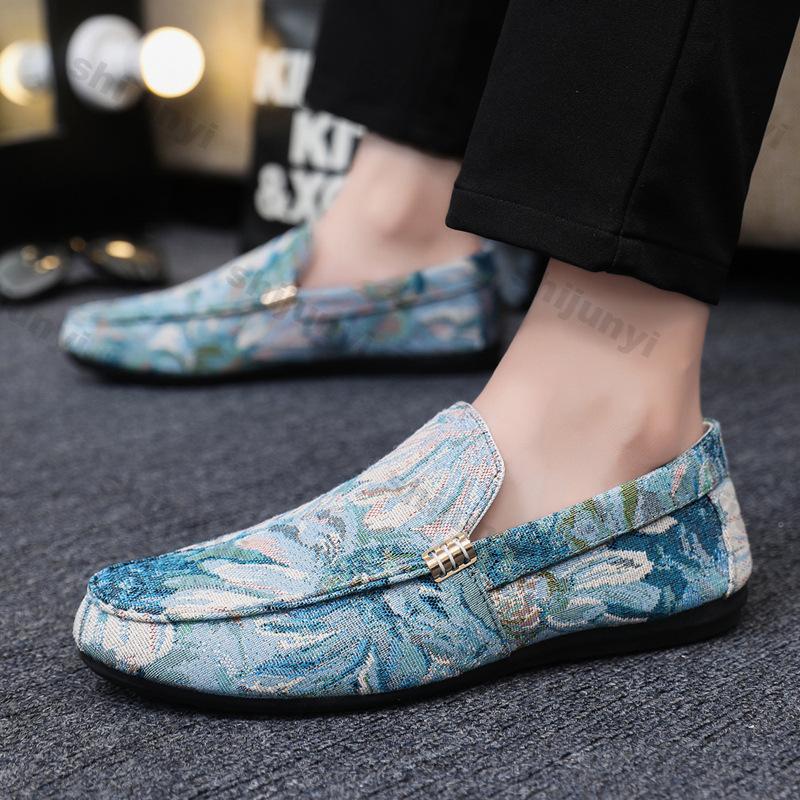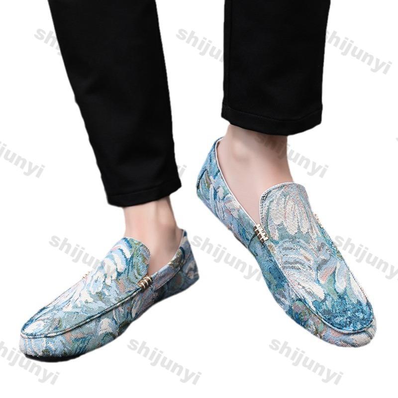 Мужские лоферы с принтом, летняя мужская обувь, повседневная легкая парусиновая обувь, мужская дышащая модная обувь на плоской подошве без застежек