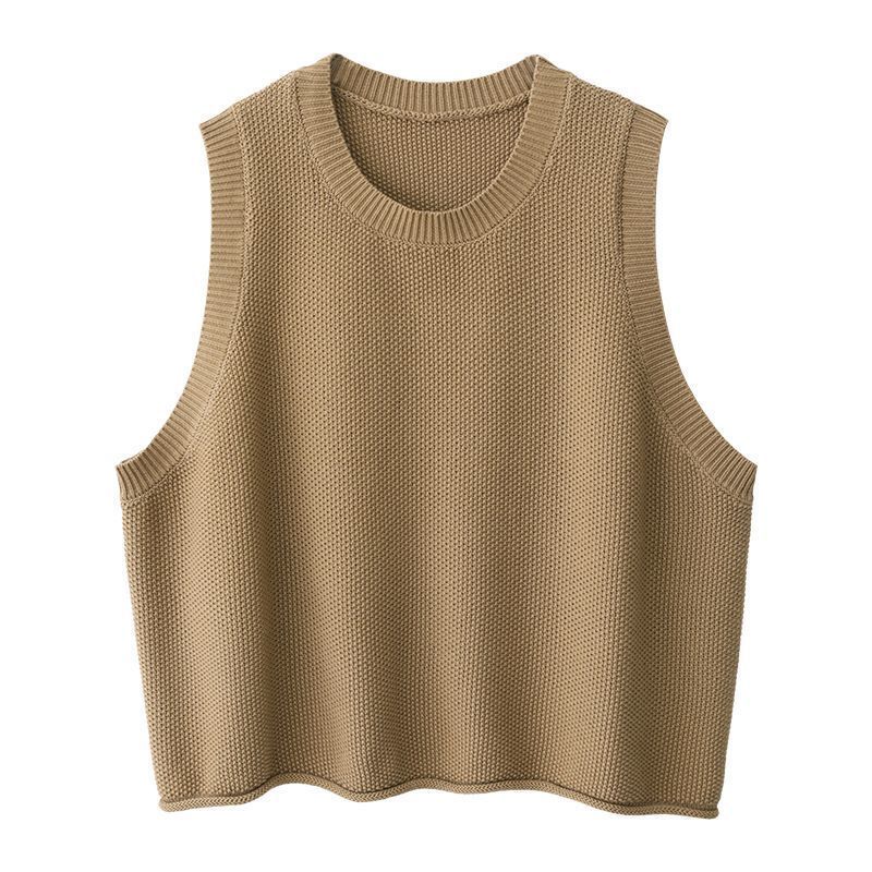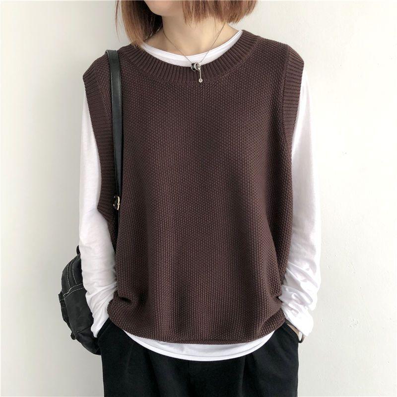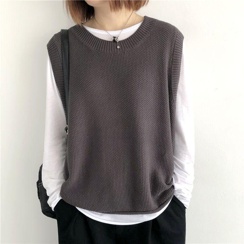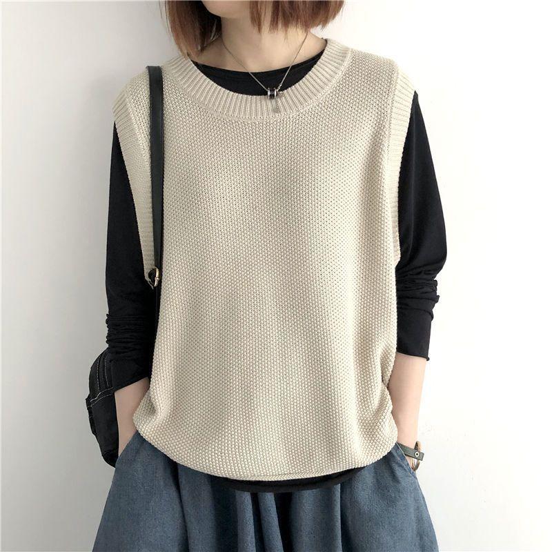 Женский вязаный жилет большого размера свободного кроя верхняя одежда на осень и зиму ретро универсальный пуловер с круглым вырезом свитер жилет кардиган