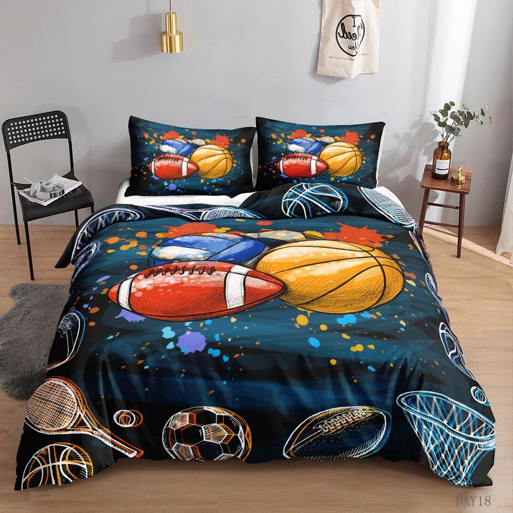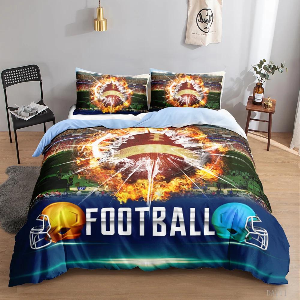 Football Duvet Cover Set 3D Sports Football Bedding Set Pillowcase For Boys Teens Double Queen King Size Polyester Qulit Cover
