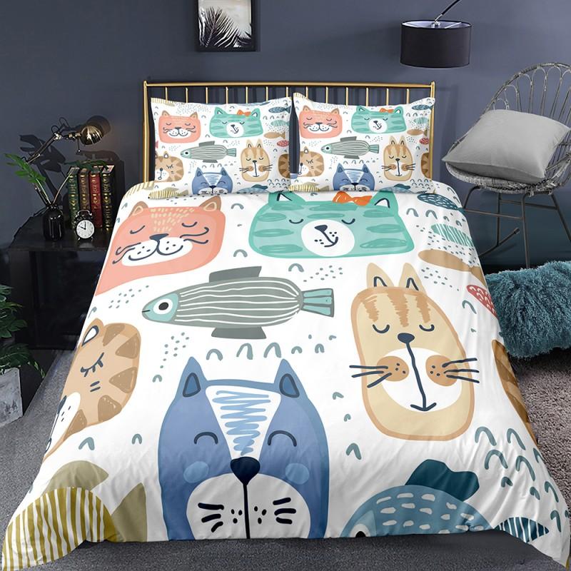 Кошка Цветы Король Королева Пододеяльник Мультяшный Китти Цветочный Постельный Комплект Для Детей Милые Животные Черный 2/3шт Полиэстер Чехол для Одеяла