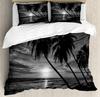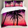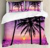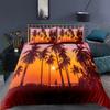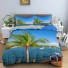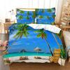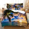 Пододеяльник King/Queen с пальмой и кокосом, комплект постельного белья цвета морской волны и неба, морской пейзаж, пляж, закат, 2/3 предмета, полиэстер