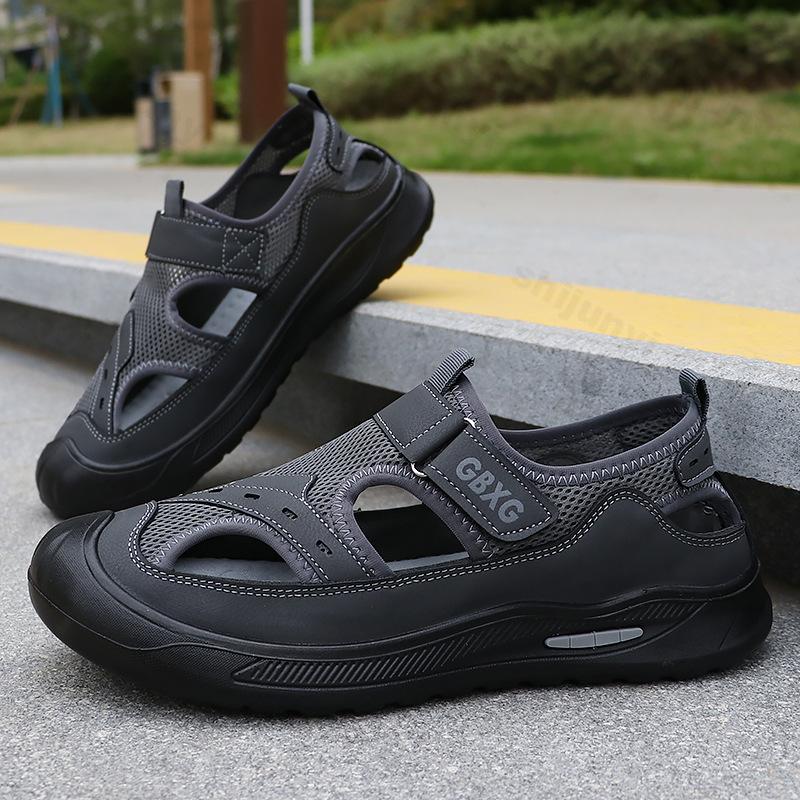 Мужские дышащие сандалии Летние низкие с вырезами Повседневные сандалии Удобные Нескользящие Модные на платформе Повседневная спортивная обувь