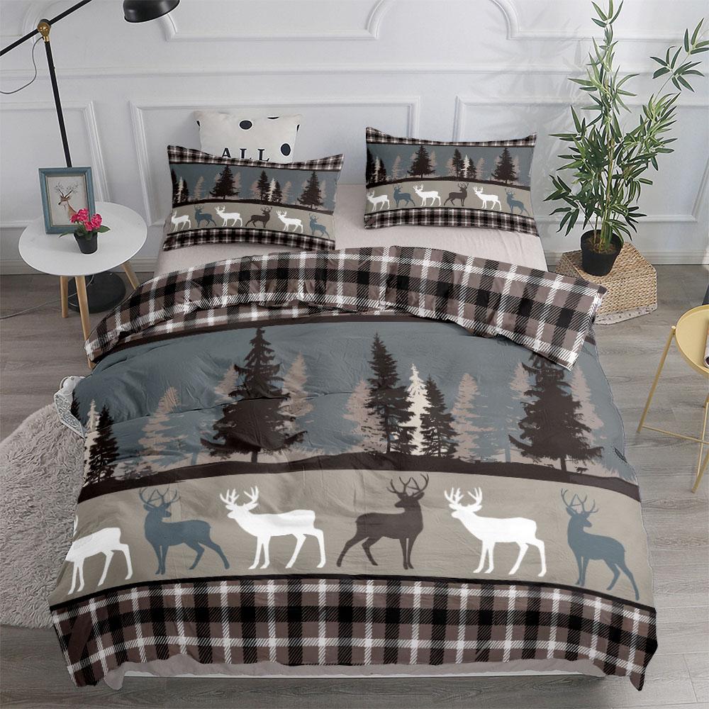 Комплект постельного белья в винтажном стиле Forest Stag Plaid King Queen Double Full Twin Single Size