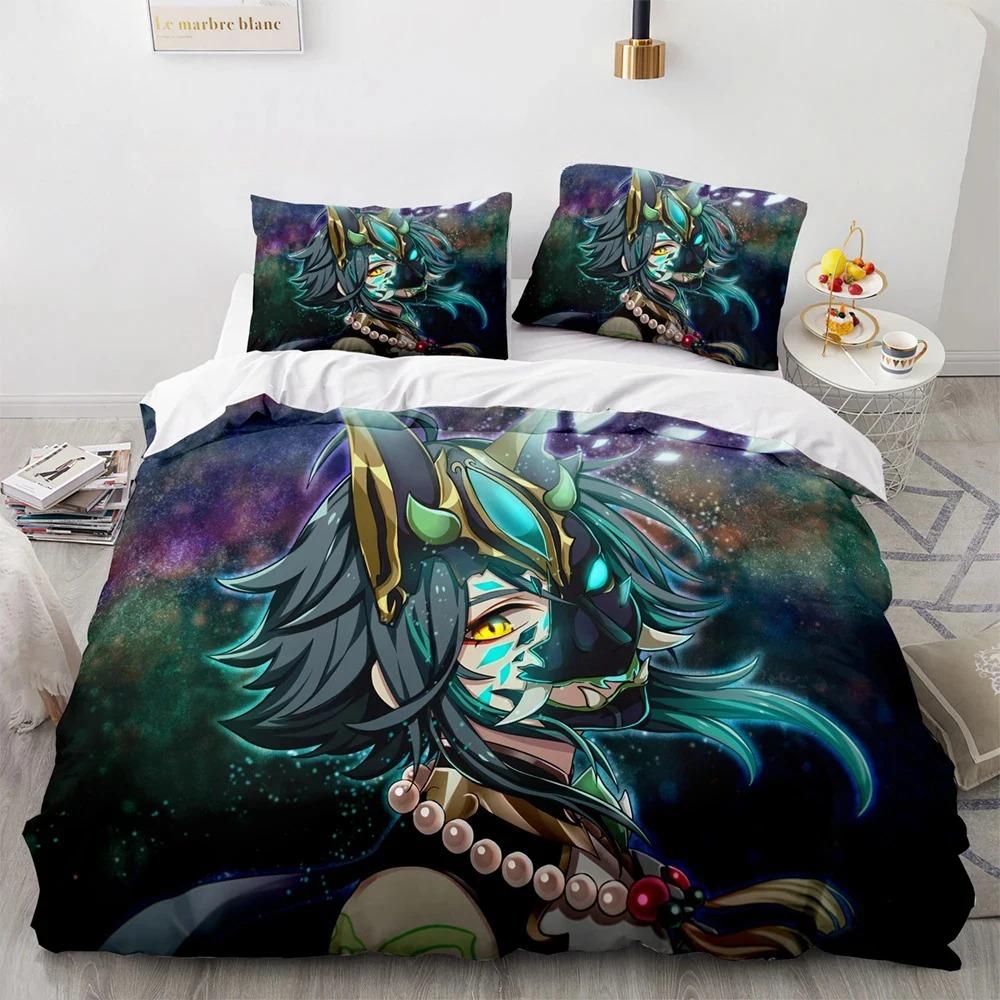 3D Печать Genshin Impact Аниме Игра Постельное Белье Комплект Двуспальный Полуторный Кинг Пододеяльник Одеяло Наволочка Мальчики Девочки Взрослые Спальня