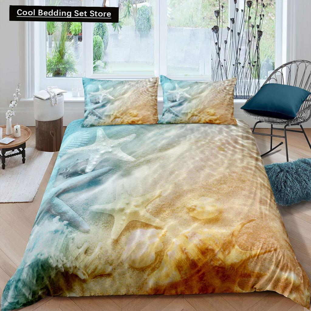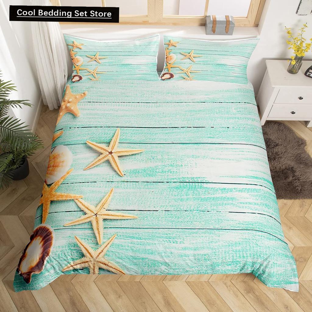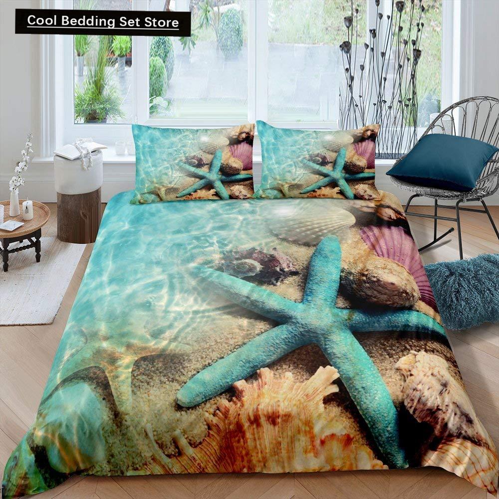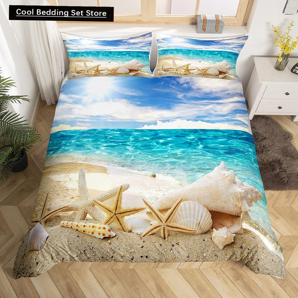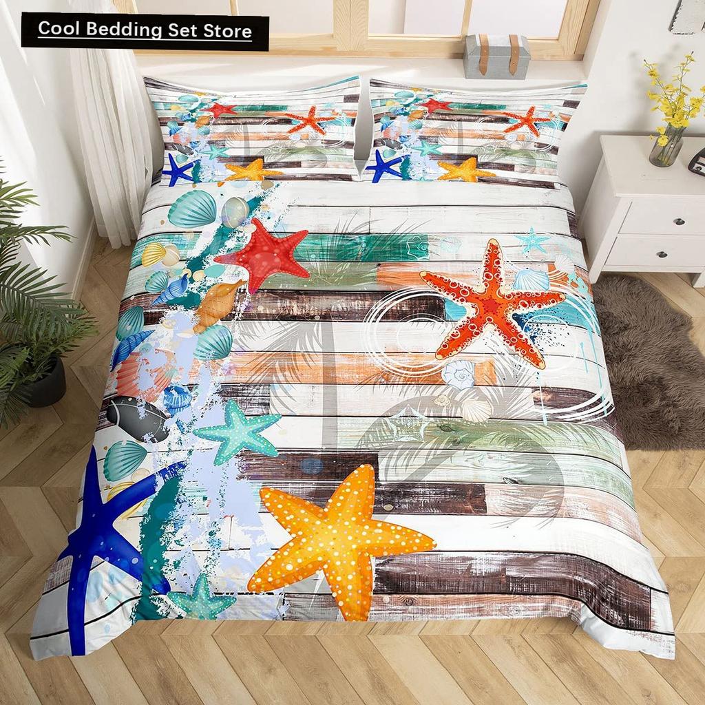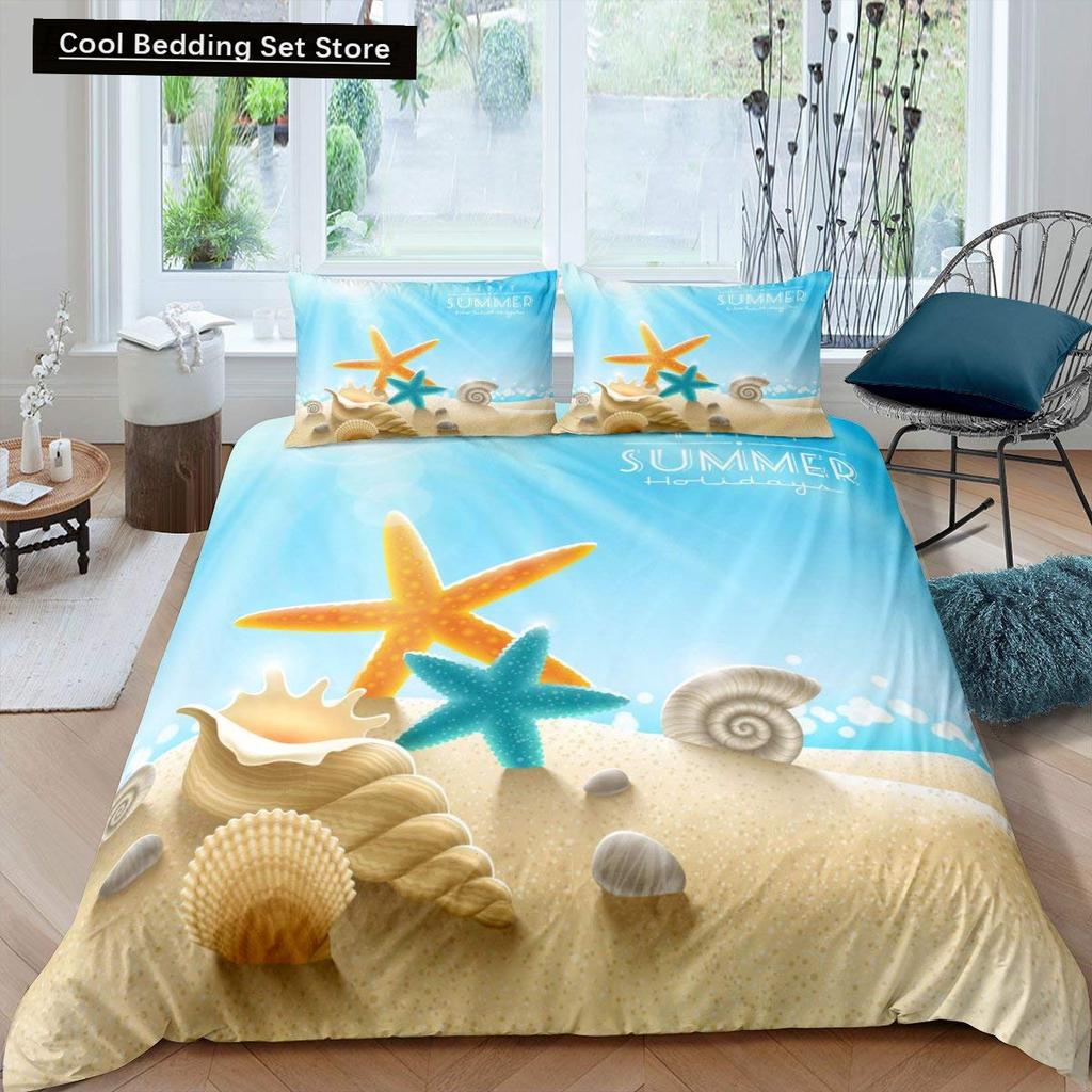Пляжная Морская Звезда Ракушка Король Королева Пододеяльник Белый Морские Существа Постельное Белье Гавайский Чехол для Одеяла Полиэстер Чехол для Одеяла