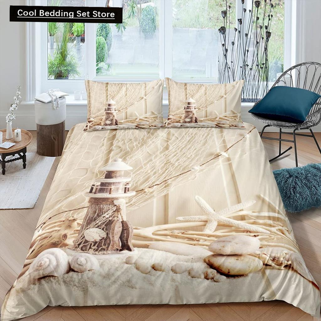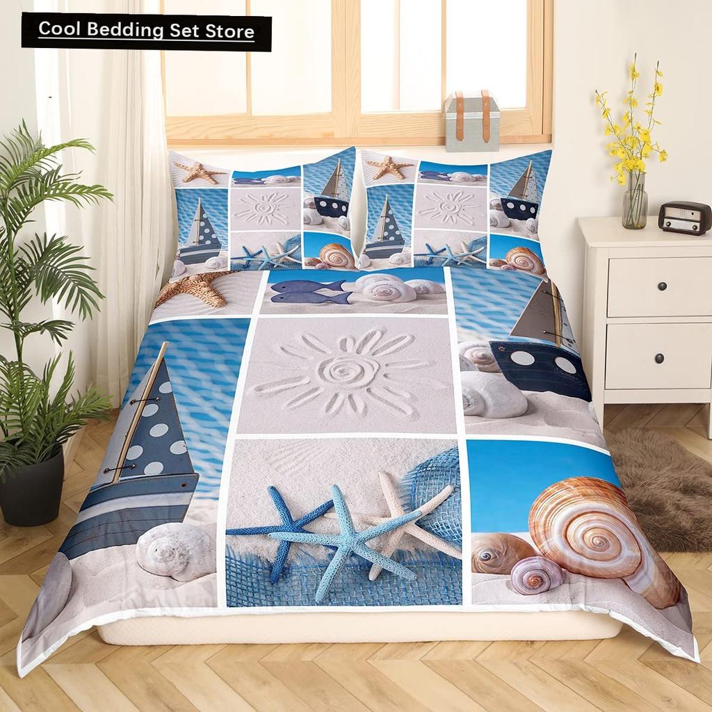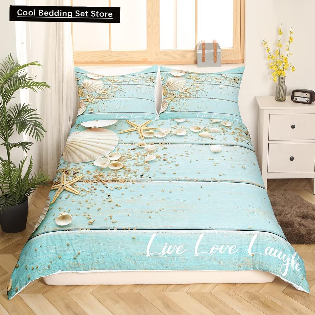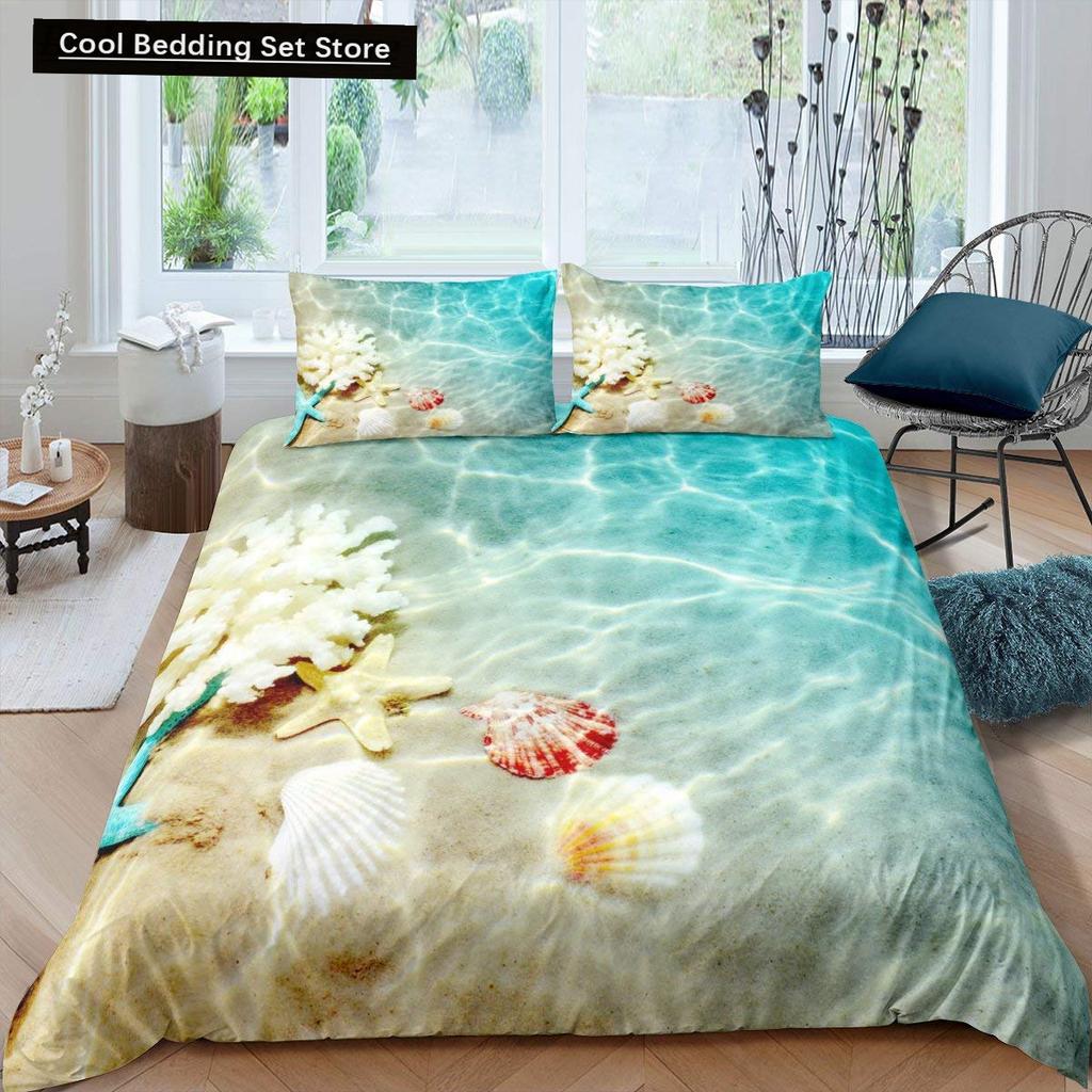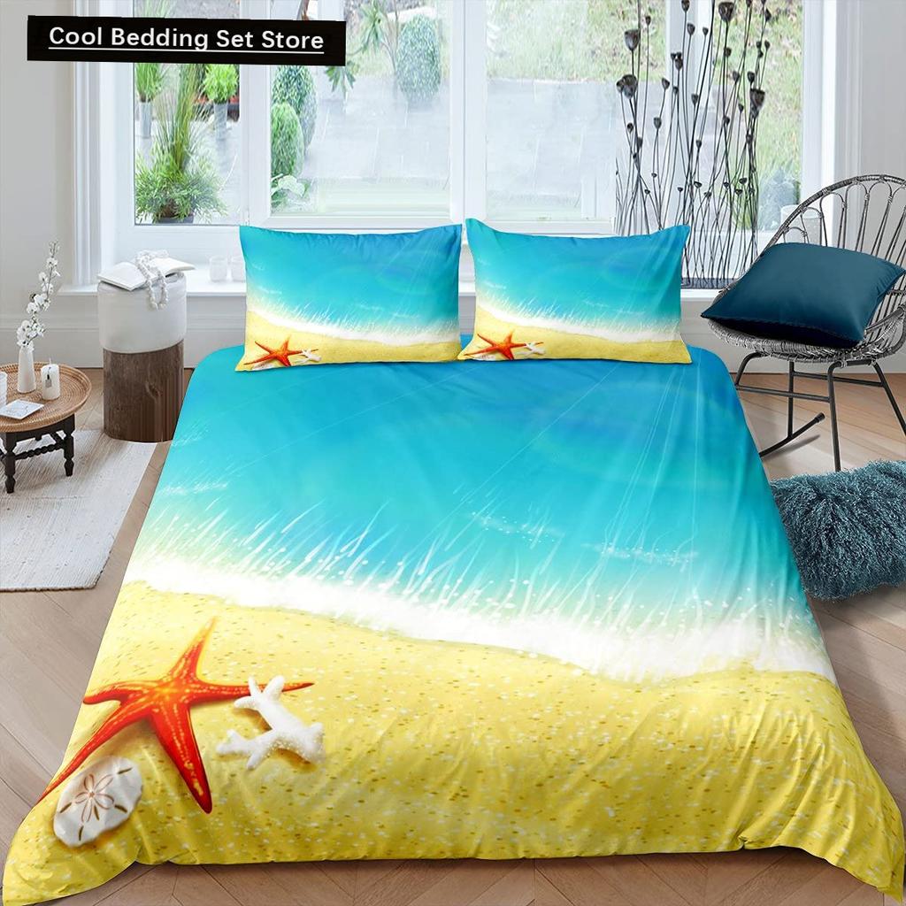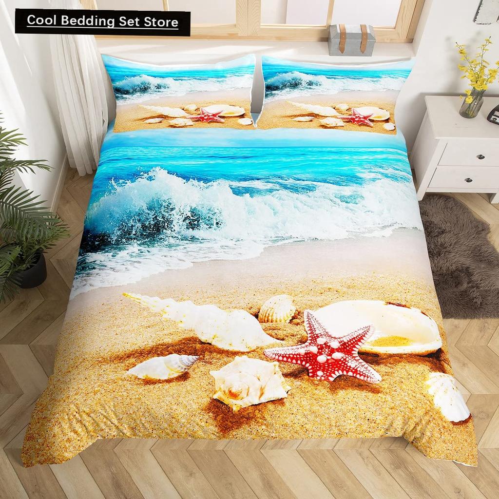 Пляжная Морская Звезда Ракушка Король Королева Пододеяльник Белый Морские Существа Постельное Белье Гавайский Чехол для Одеяла Полиэстер Чехол для Одеяла