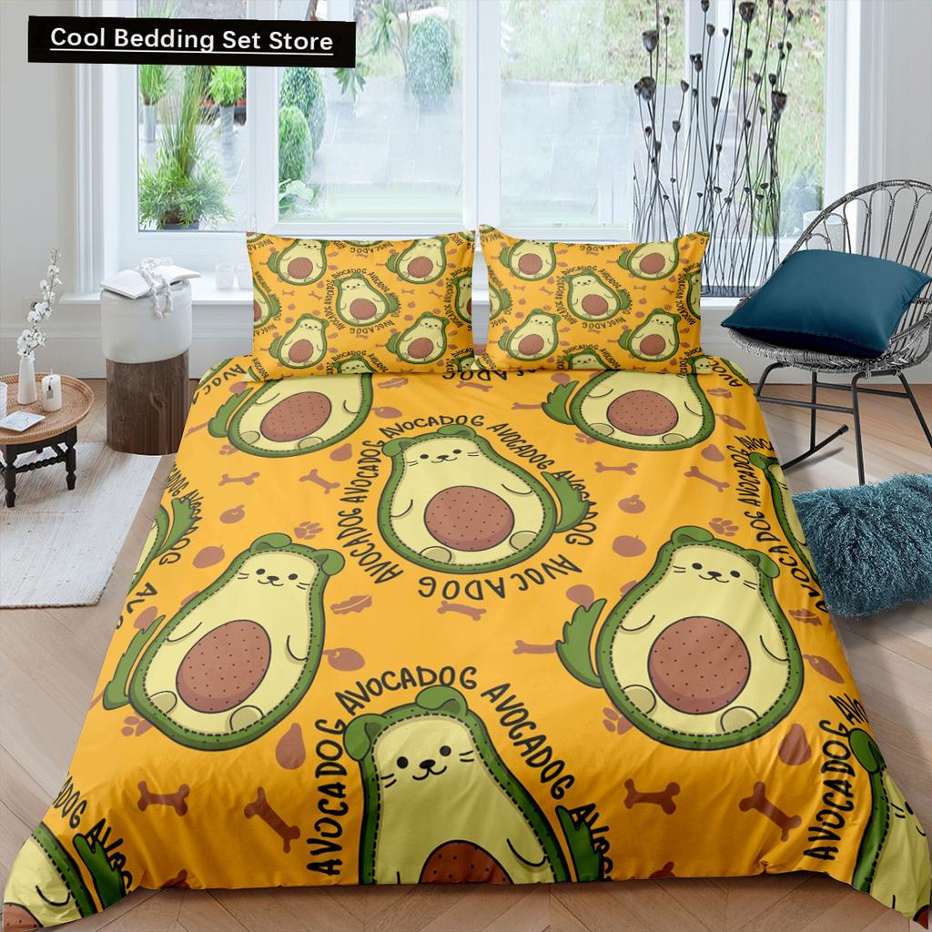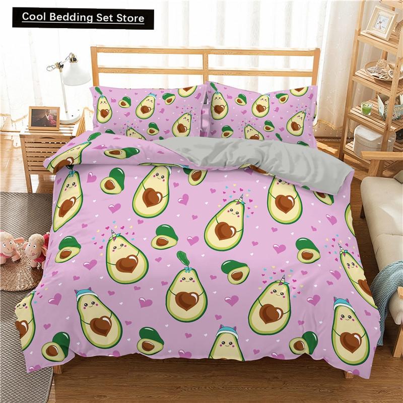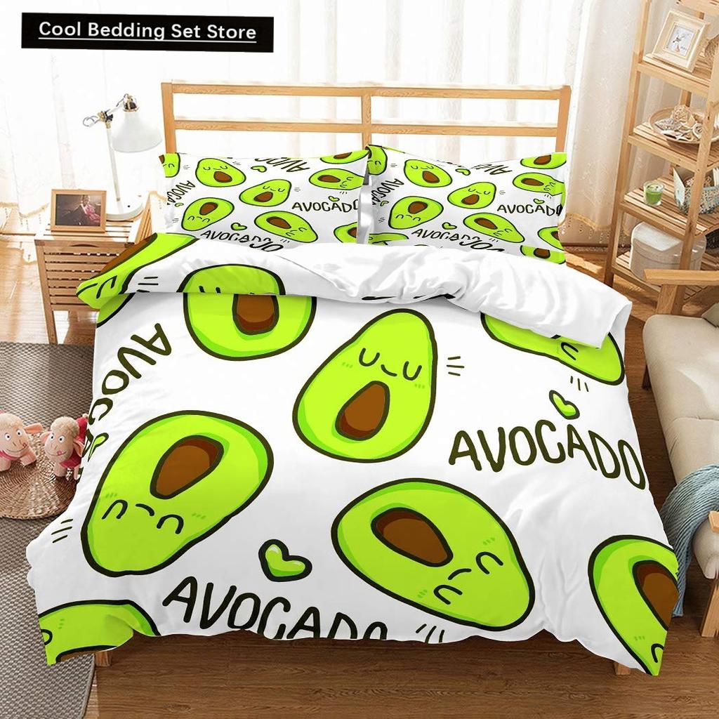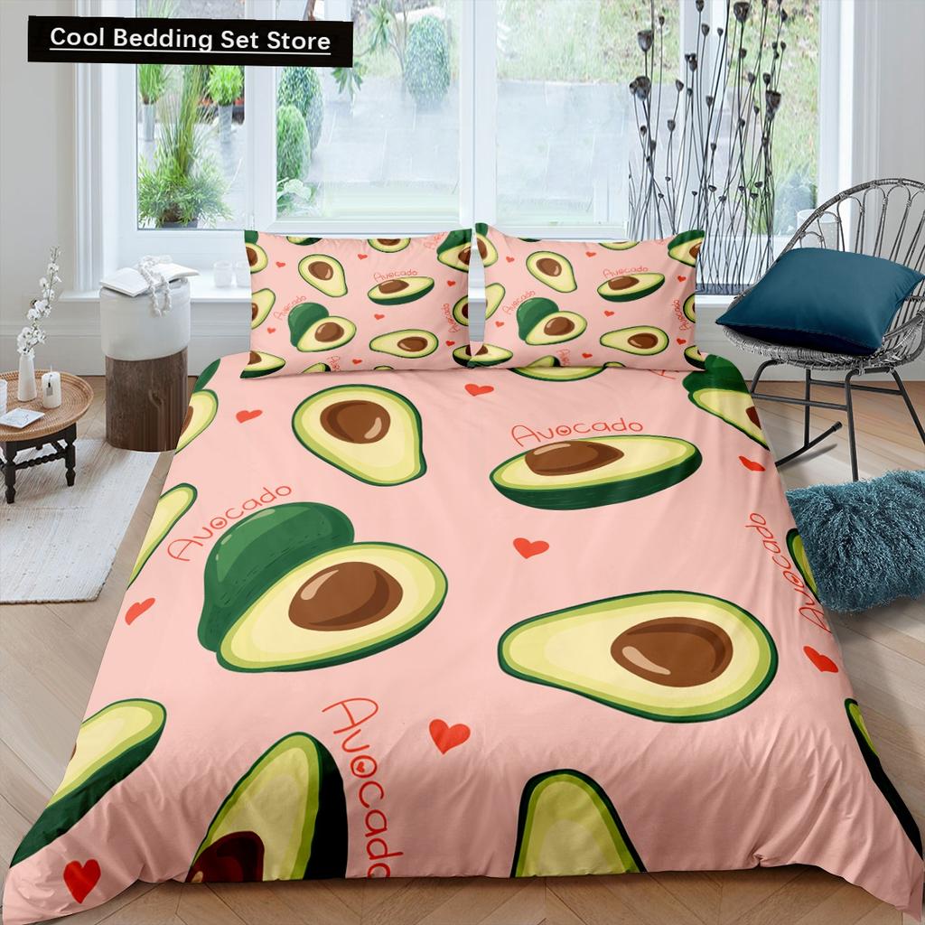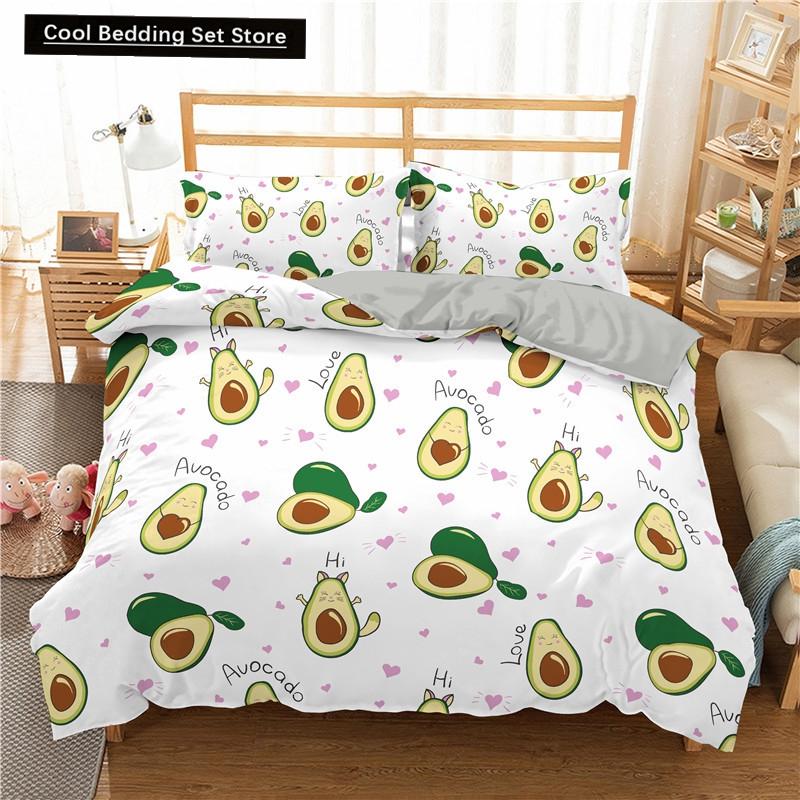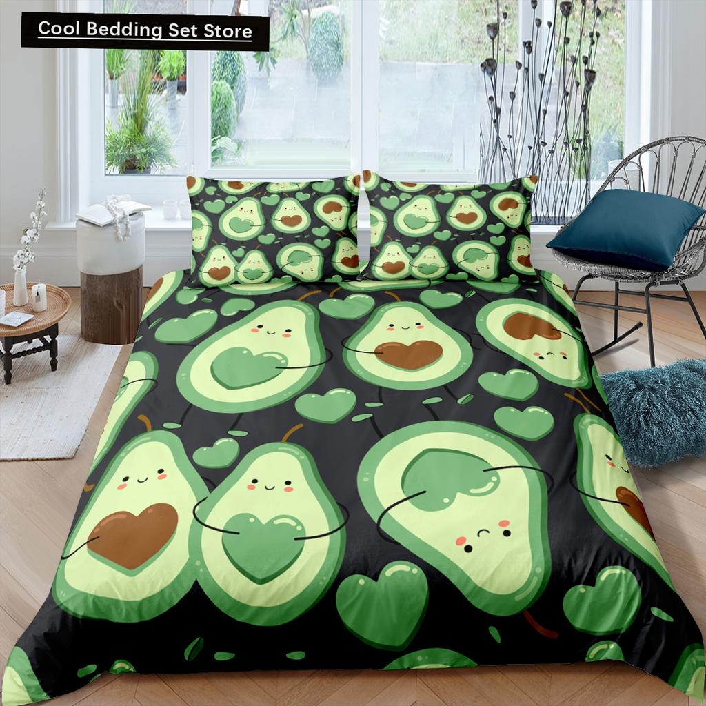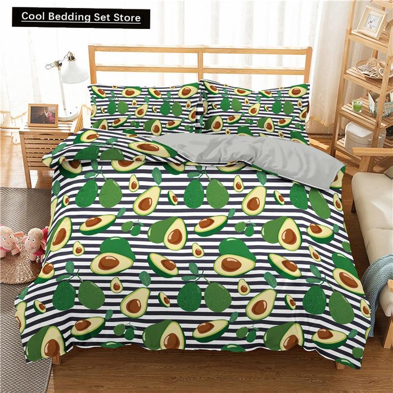 Зеленый авокадо King Queen Пододеяльник Мультяшный авокадо Постельное белье Фрукты Пододеяльник Тропическое растение Полиэстеровый пододеяльник