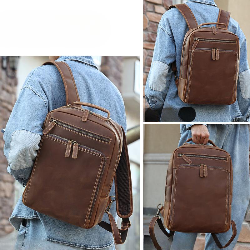 Рюкзак для путешествий на открытом воздухе, мужской рюкзак из натуральной кожи, мужская сумка, деловой повседневный рюкзак из кожи Crazy Horse