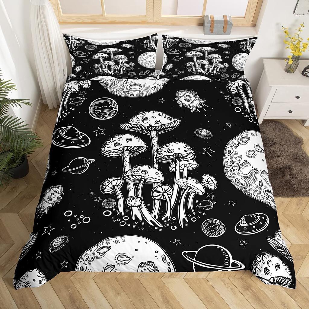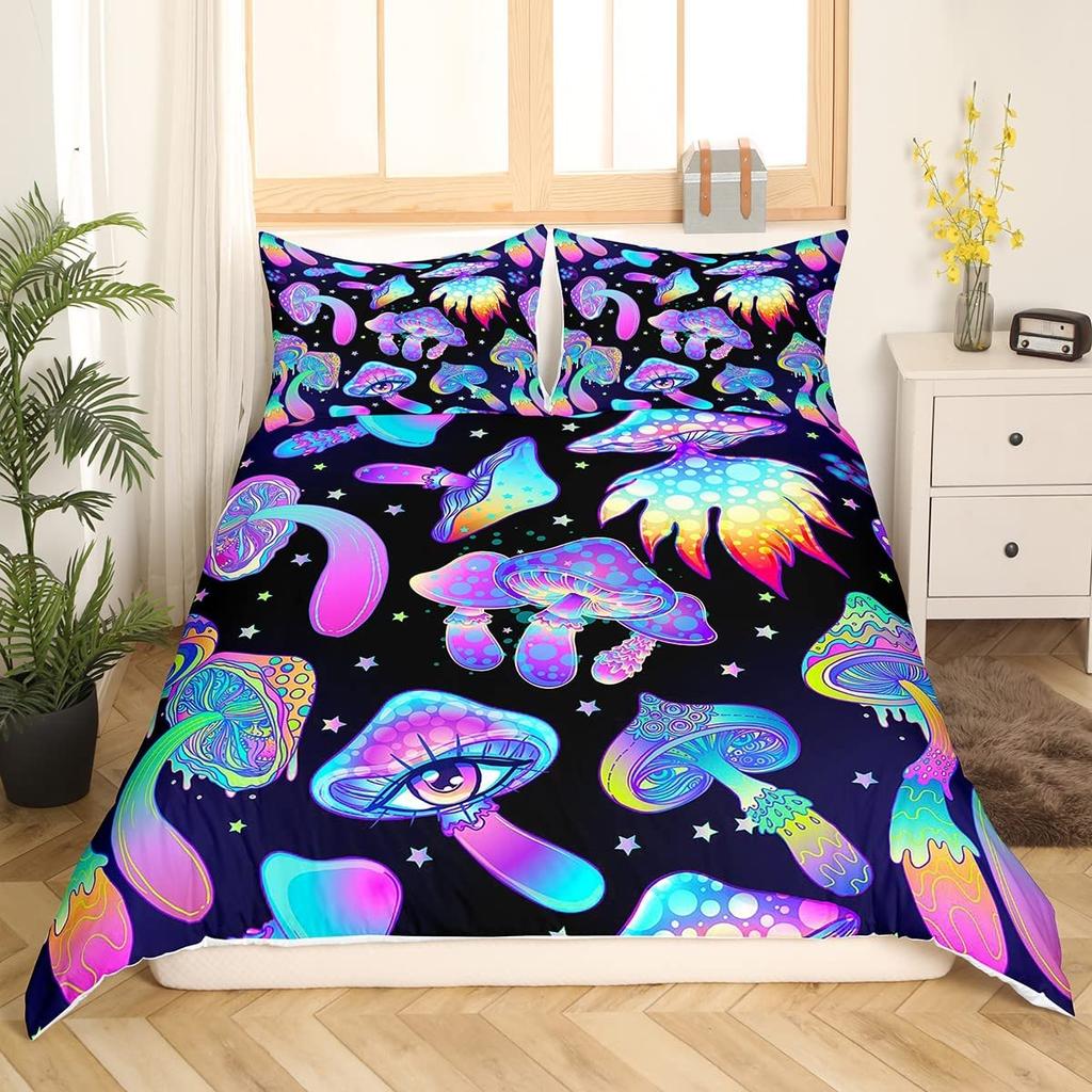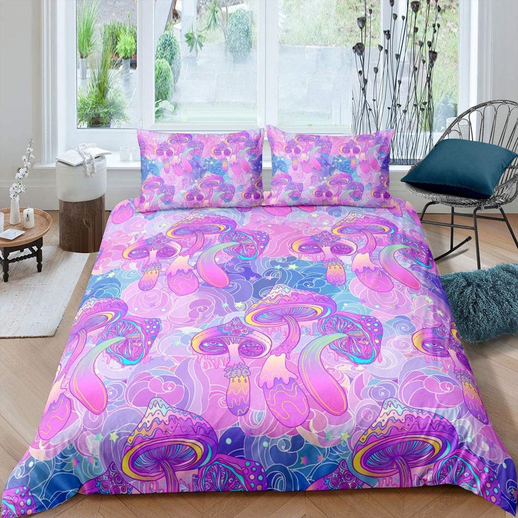 Комплект пододеяльника «Дикие грибы» Бордовый комплект постельного белья с растениями для детей Пододеяльник Мягкий полиэстер Размер кинг/квин с наволочкой