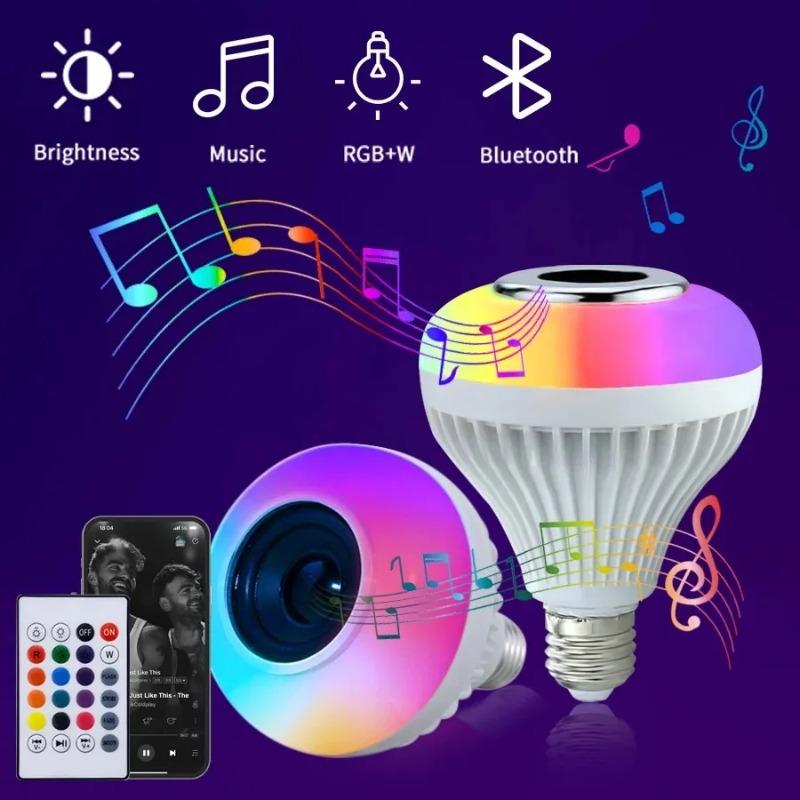 Светодиодная музыкальная лампочка со встроенным Bluetooth-динамиком, беспроводная умная лампочка с пультом дистанционного управления, динамик с изменяющимся цветом RGB