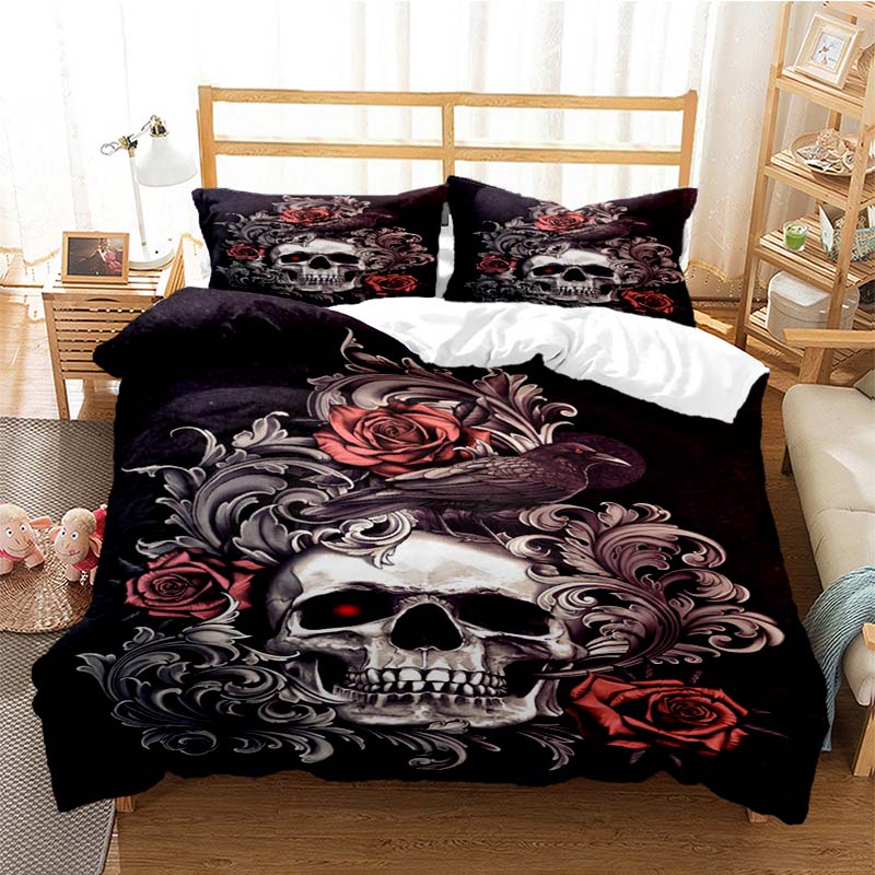 Набор пододеяльников Сахарный череп размера Квин цветы скелет постельное белье двуспальный комплект постельного белья с наволочкой размер Кинг пододеяльник с черепом