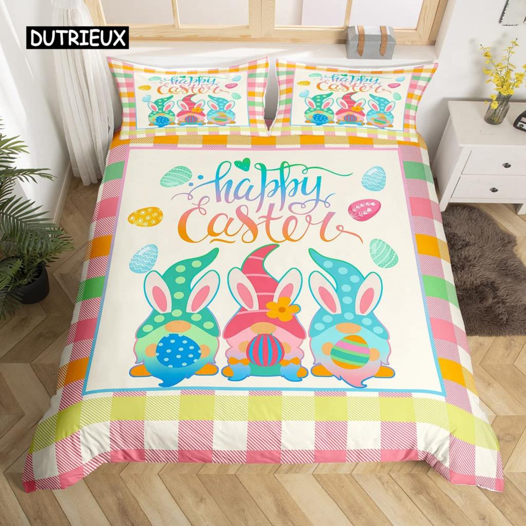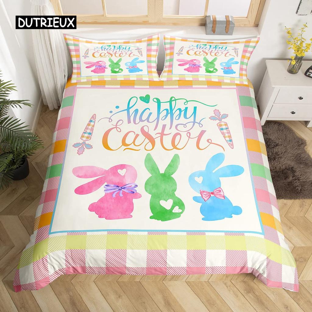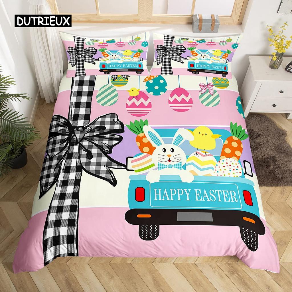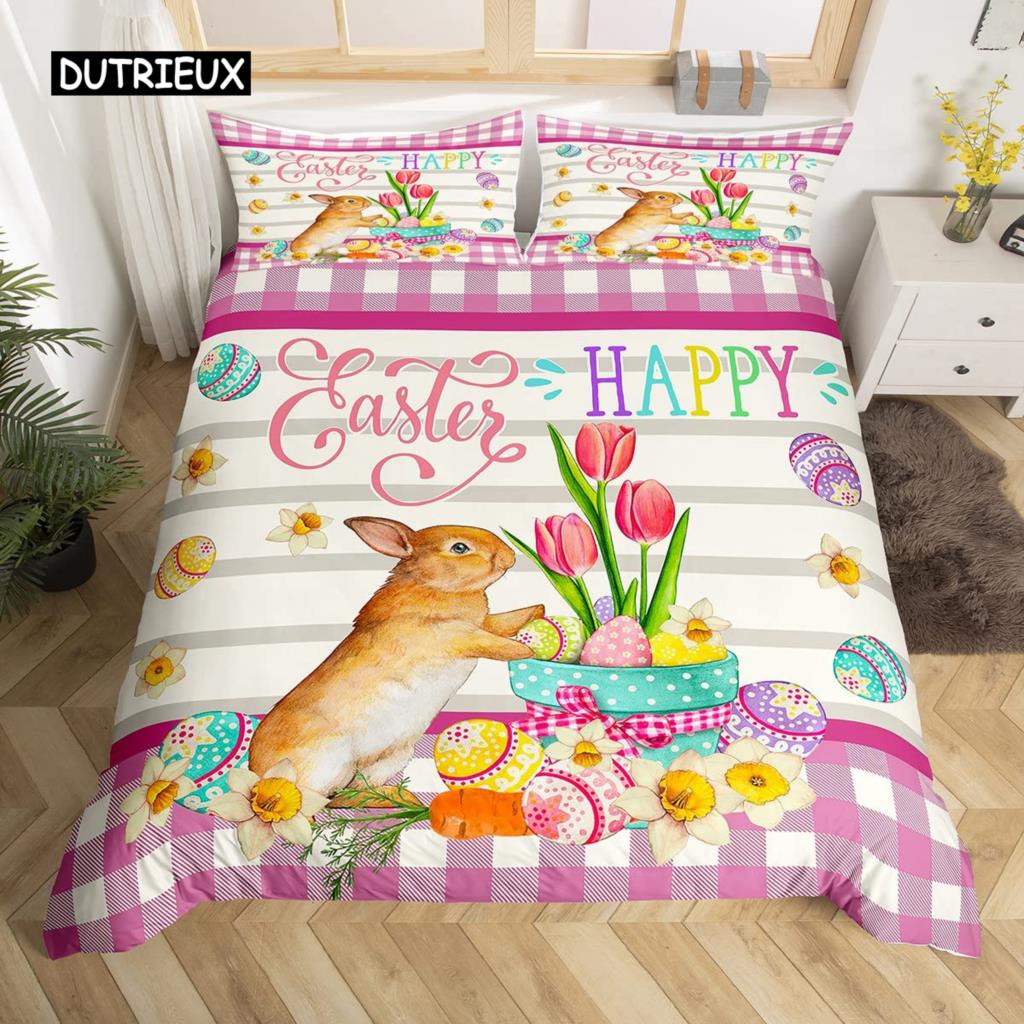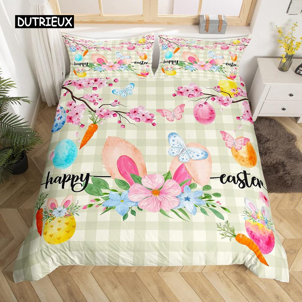 Розовый пододеяльник с цветущей сакурой, тема «Счастливой Пасхи», кроличьи уши, пасхальные яйца, постельный комплект, полиэстер, бабочка, цветок, пододеяльник