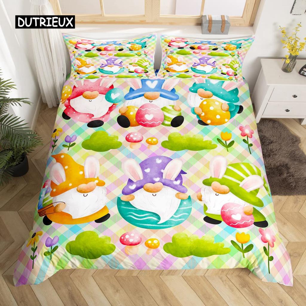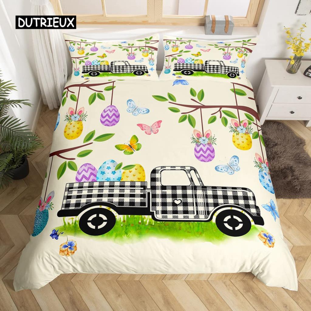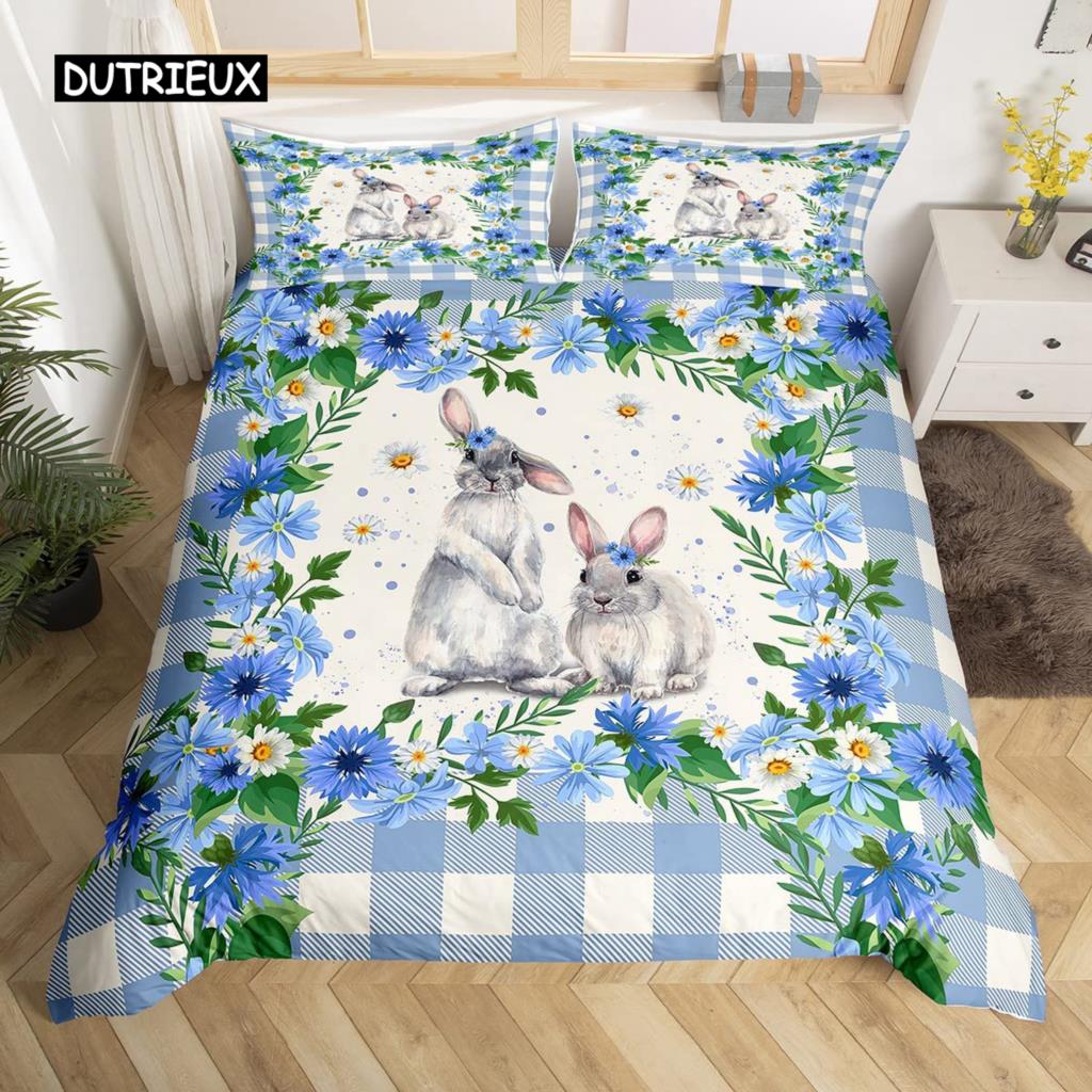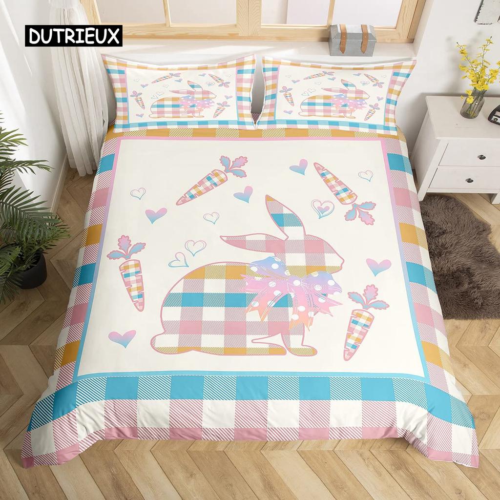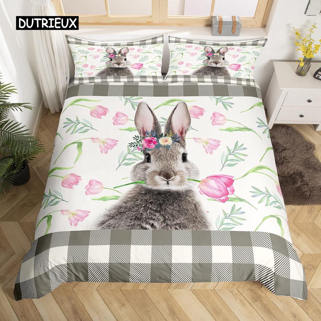 Розовый пододеяльник с цветущей сакурой, тема «Счастливой Пасхи», кроличьи уши, пасхальные яйца, постельный комплект, полиэстер, бабочка, цветок, пододеяльник