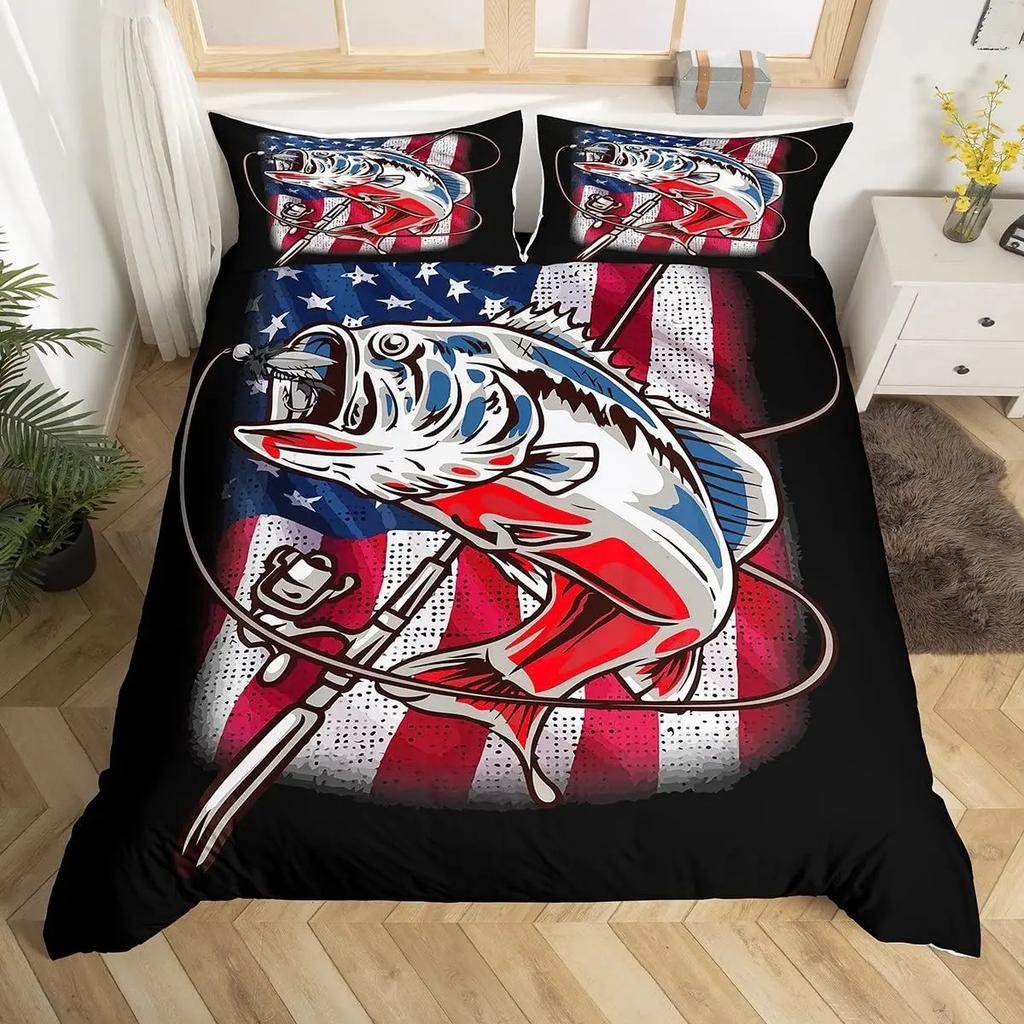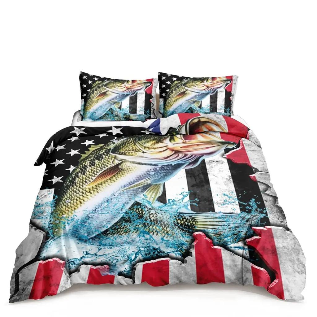 Постельное белье с изображением щуки и окуня, большой узор с изображением охоты и рыбалки, пододеяльник для мальчиков, украшения для спальни для подростков