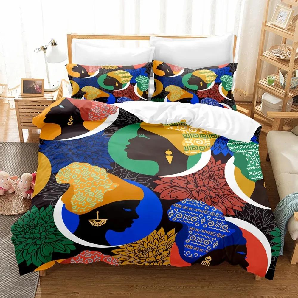 Африканский комплект пододеяльника размера кинг/квин, современный стильный, черная женщина с гирляндой, декоративный полиэстеровый комплект постельного белья для девушек и женщин