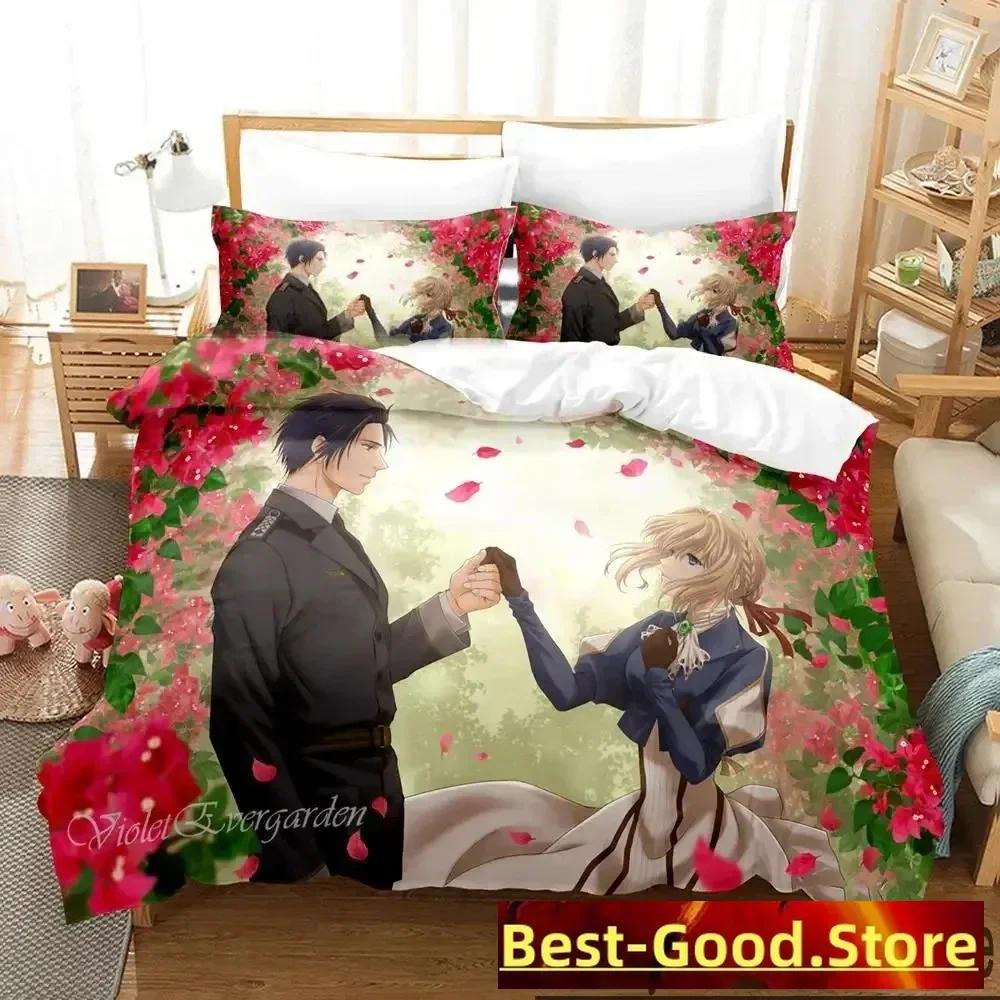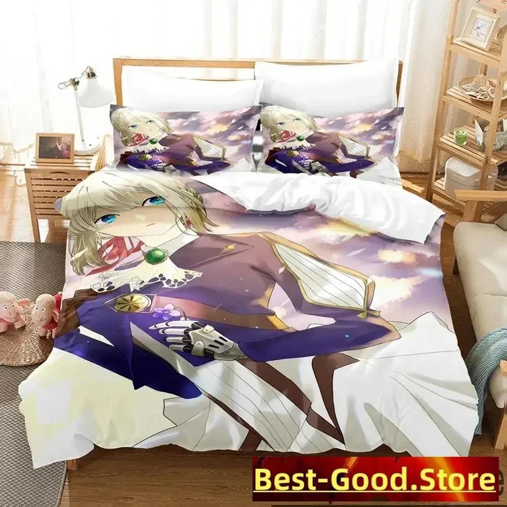 Аниме Вайолет Эвергарден Принтованный Постельный Набор Пододеяльник Наволочка Постельный Комплект Постельное Белье Простыня Покрывало Полный Двуспальный Королевский Размер