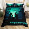 Детский набор пододеяльника с тыквенным фонарем Твин Кинг Хэллоуин Постельное белье Набор из микрофибры Ведьма Мистика Кладбище Принт Пододеяльник