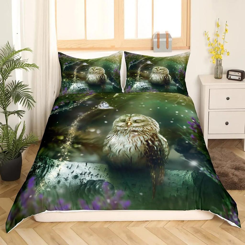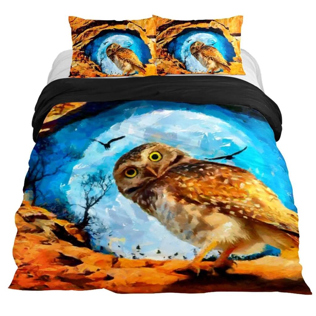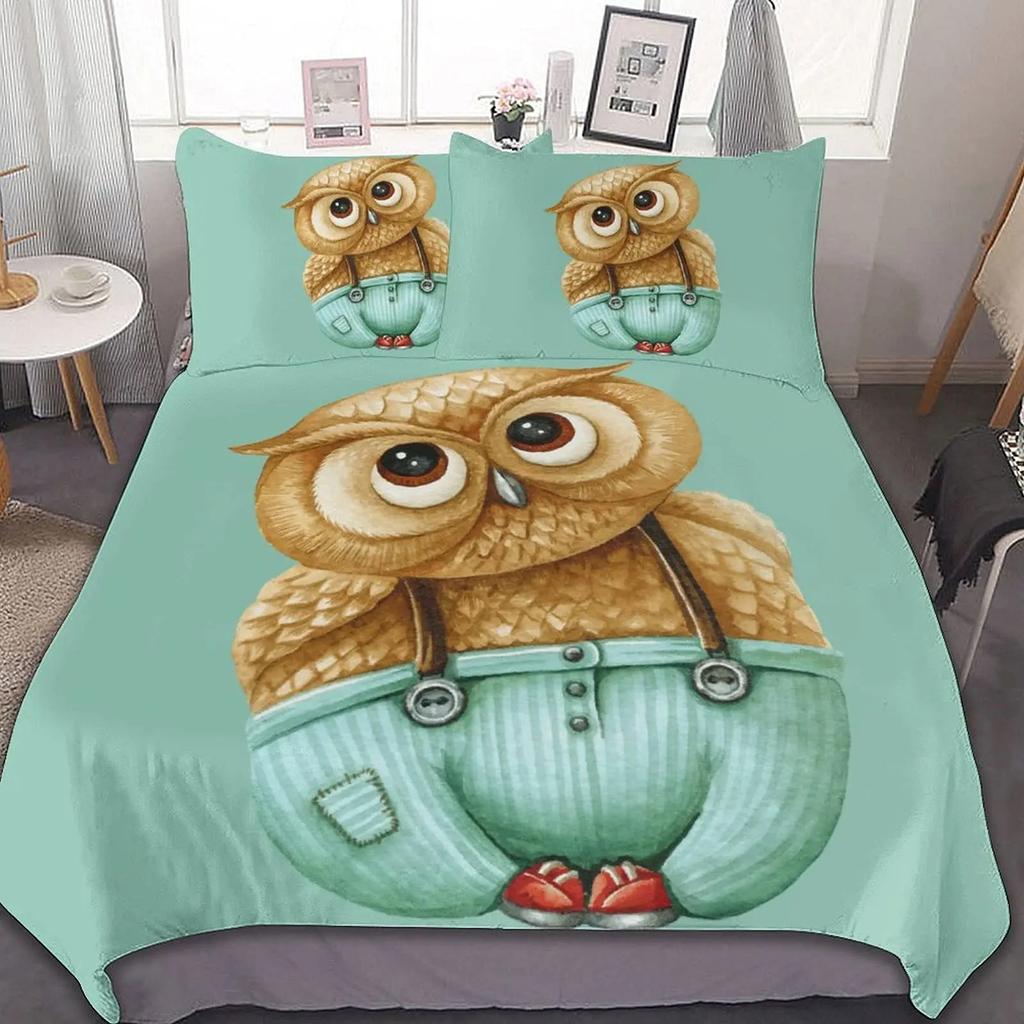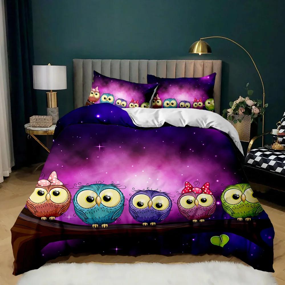 Пододеяльник с совой Двуспальный Кинг Сайз Квин Сайз Мультяшный пододеяльник с совой Птица Животное Комплект постельного белья Мальчики Чехол для одеяла Полиэстеровый чехол для одеяла