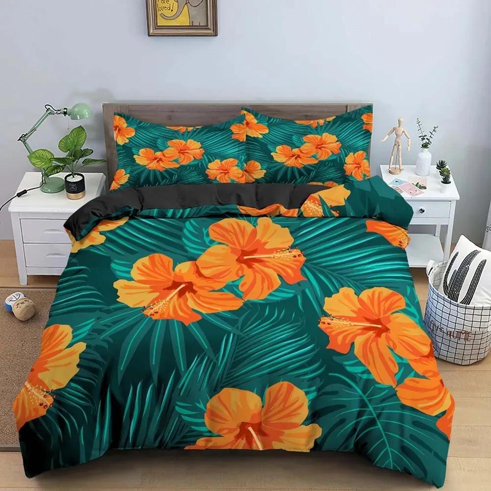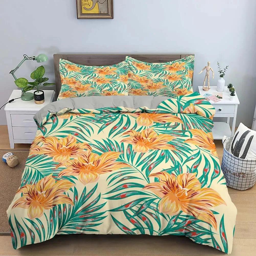 Пододеяльник с тропическими цветами и листьями, Кинг, Квин, красочный винтажный цветочный комплект постельного белья для взрослых, женщин, бохо, полиэстеровый чехол для одеяла