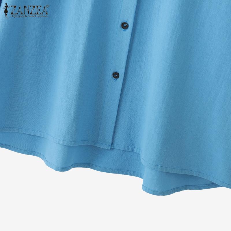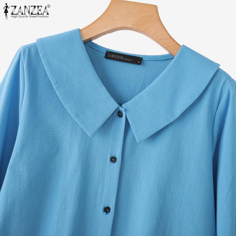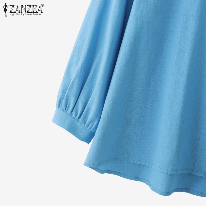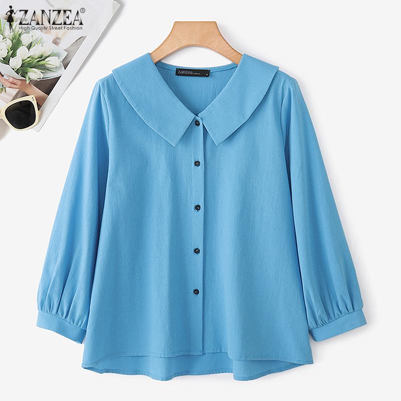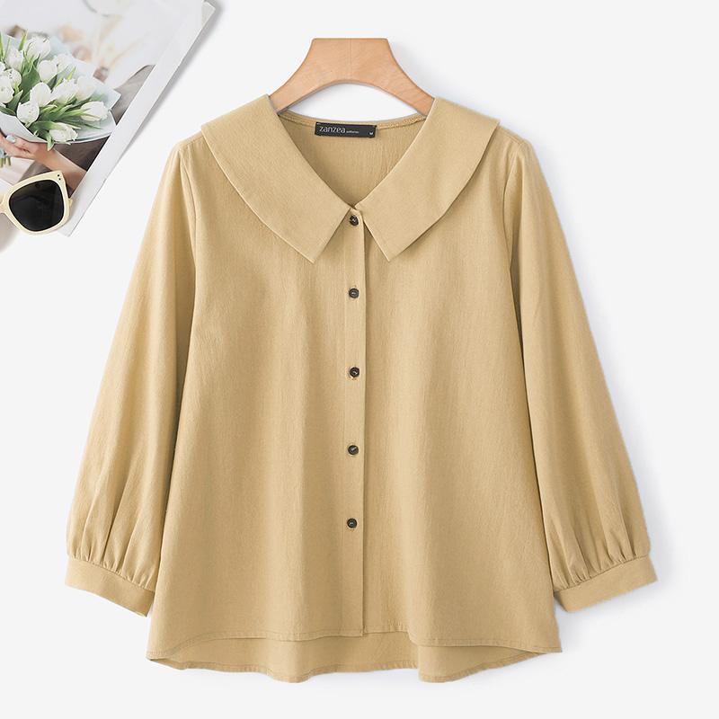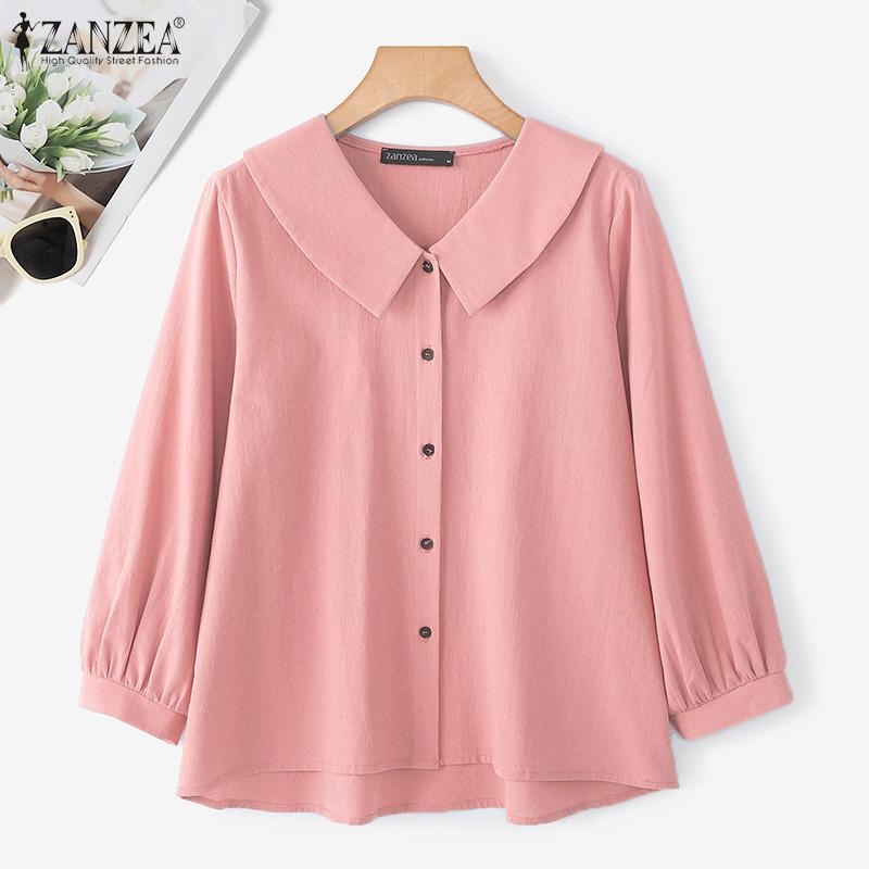 ZANZEA Женская блузка с отложным воротником, свободного кроя, с длинными рукавами, однотонная, в стиле кэжуал