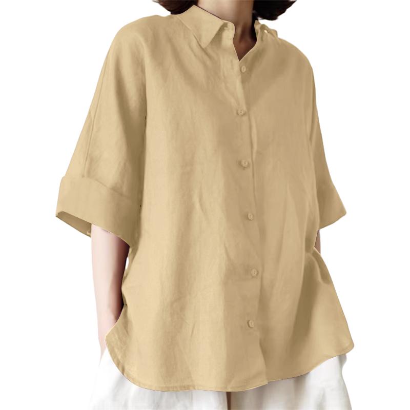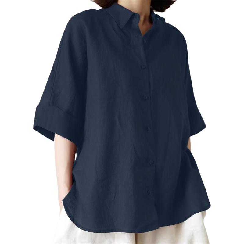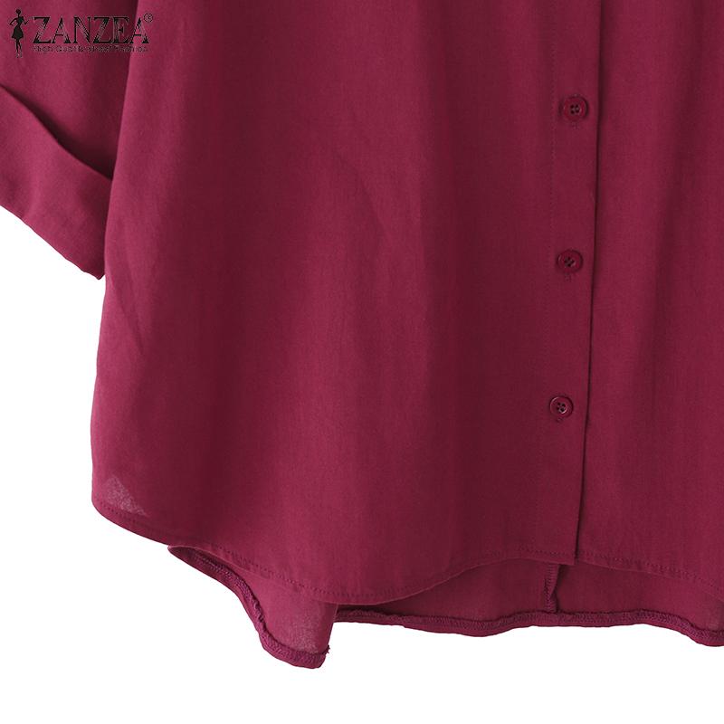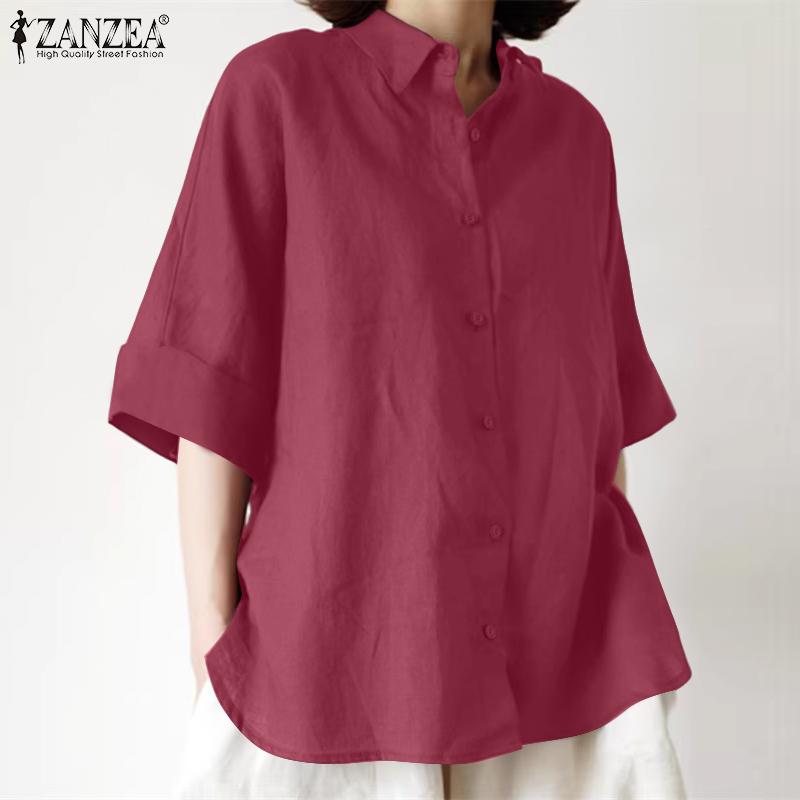 ZANZEA Женская повседневная хлопковая блузка свободного кроя с отложным воротником и рукавом 3/4